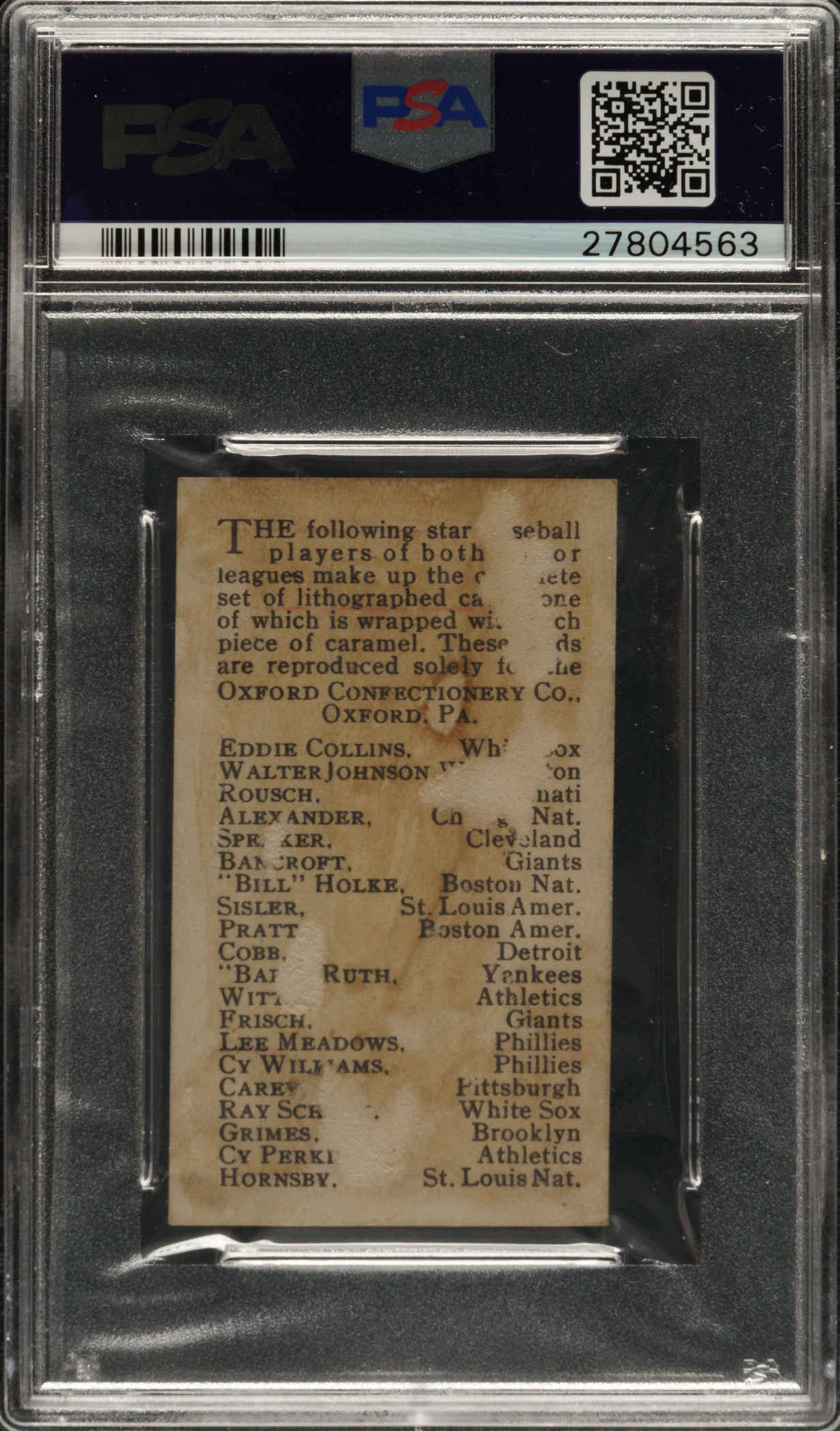 Graded POOR 1 by PSA. Washington Senators Hall of Famer Walter Johnson.