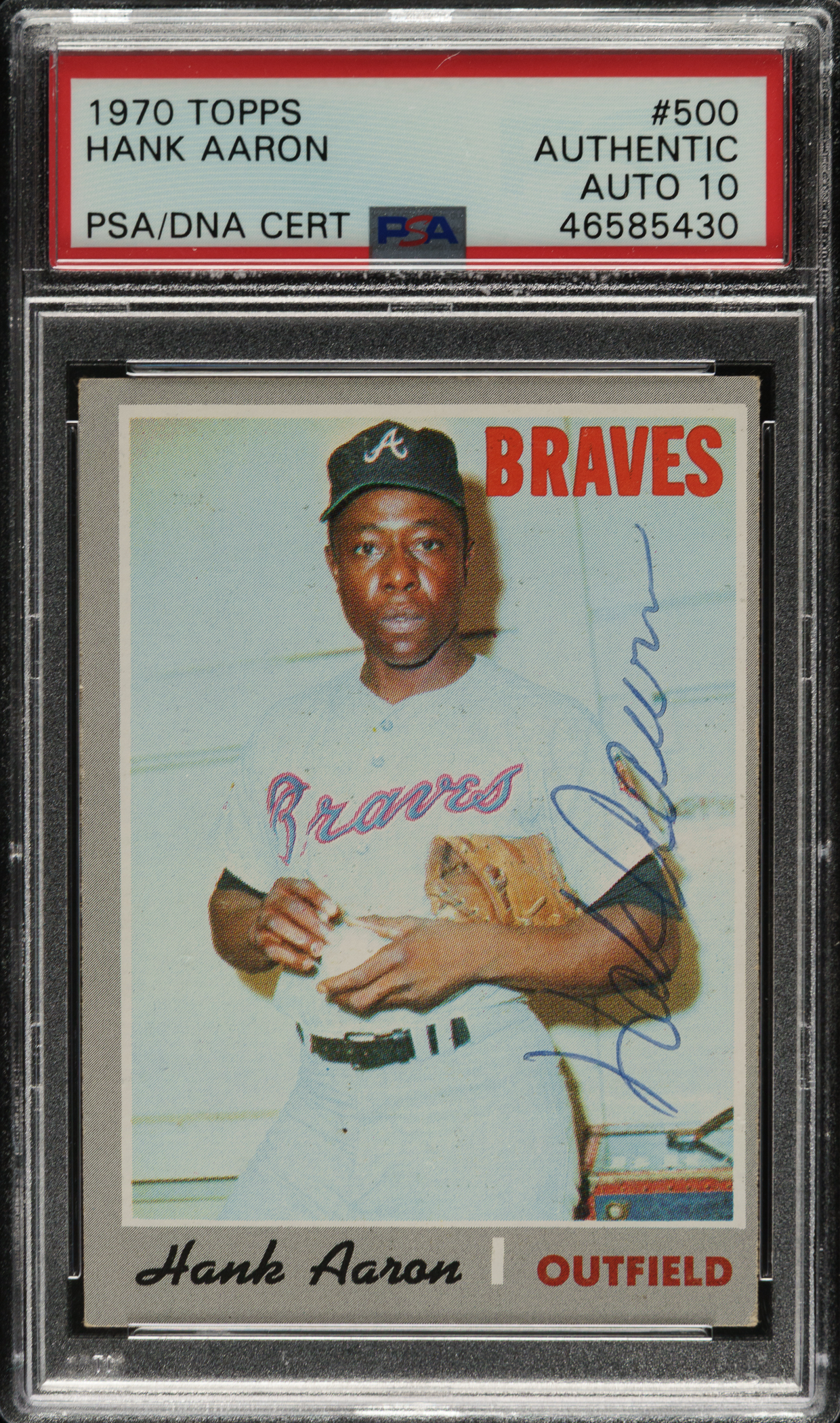 PSA/DNA has encapsulated the card and graded the signature GEM MINT 10. Atlanta Braves Hall of Famer Hank Aaron.