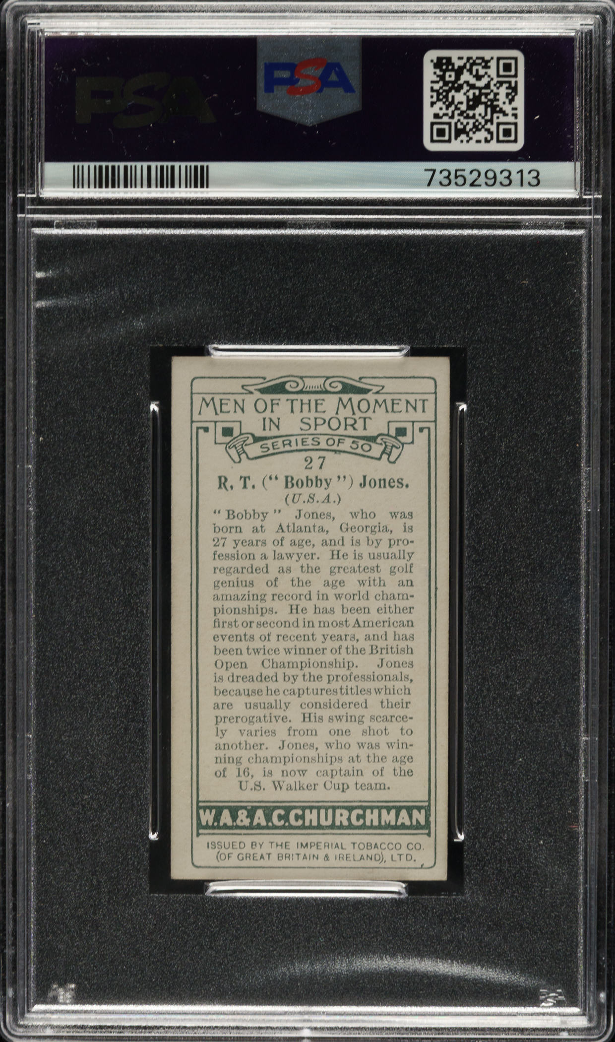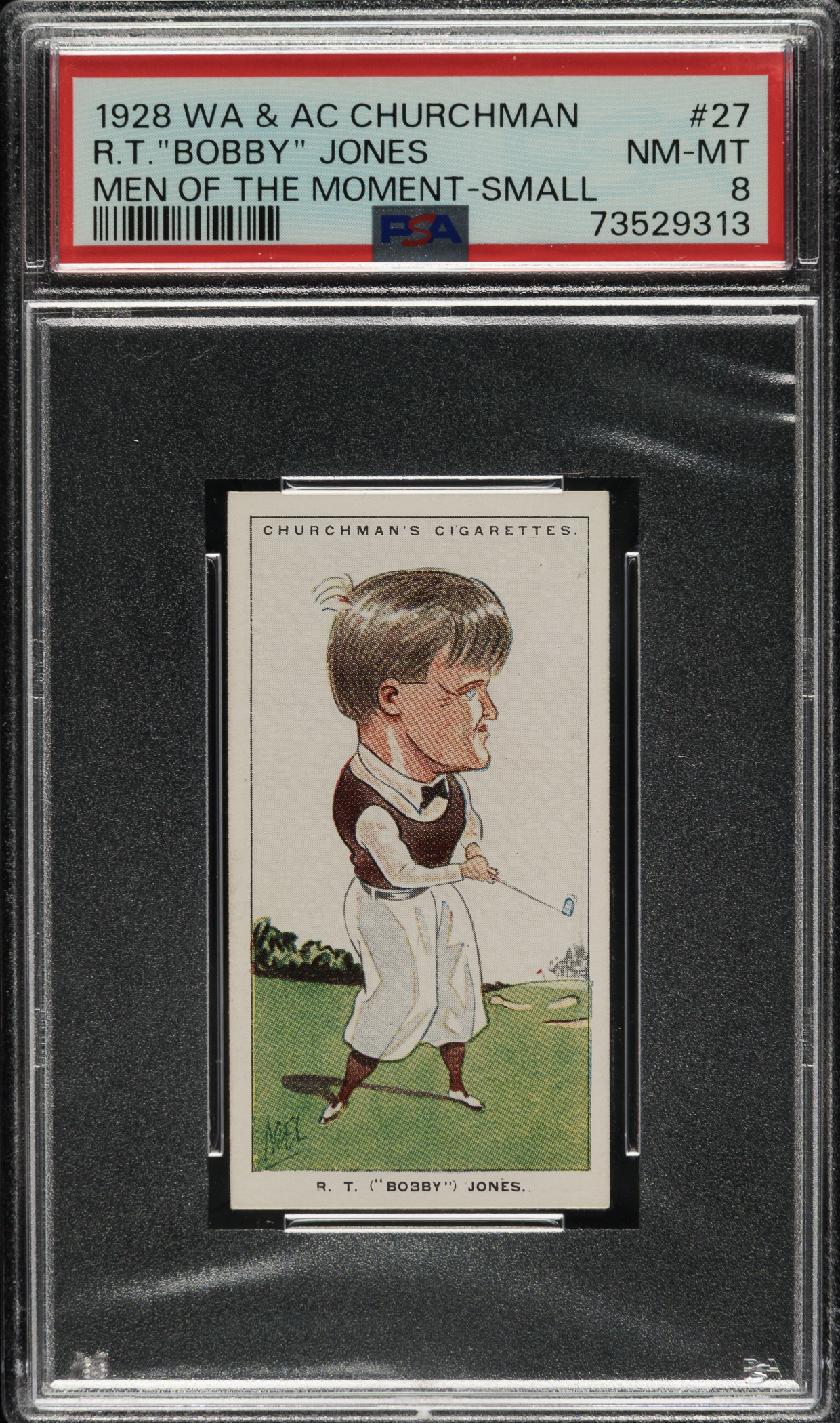 Graded NM-MT 8 by PSA. Golf Hall of Famer Bobby Jones.