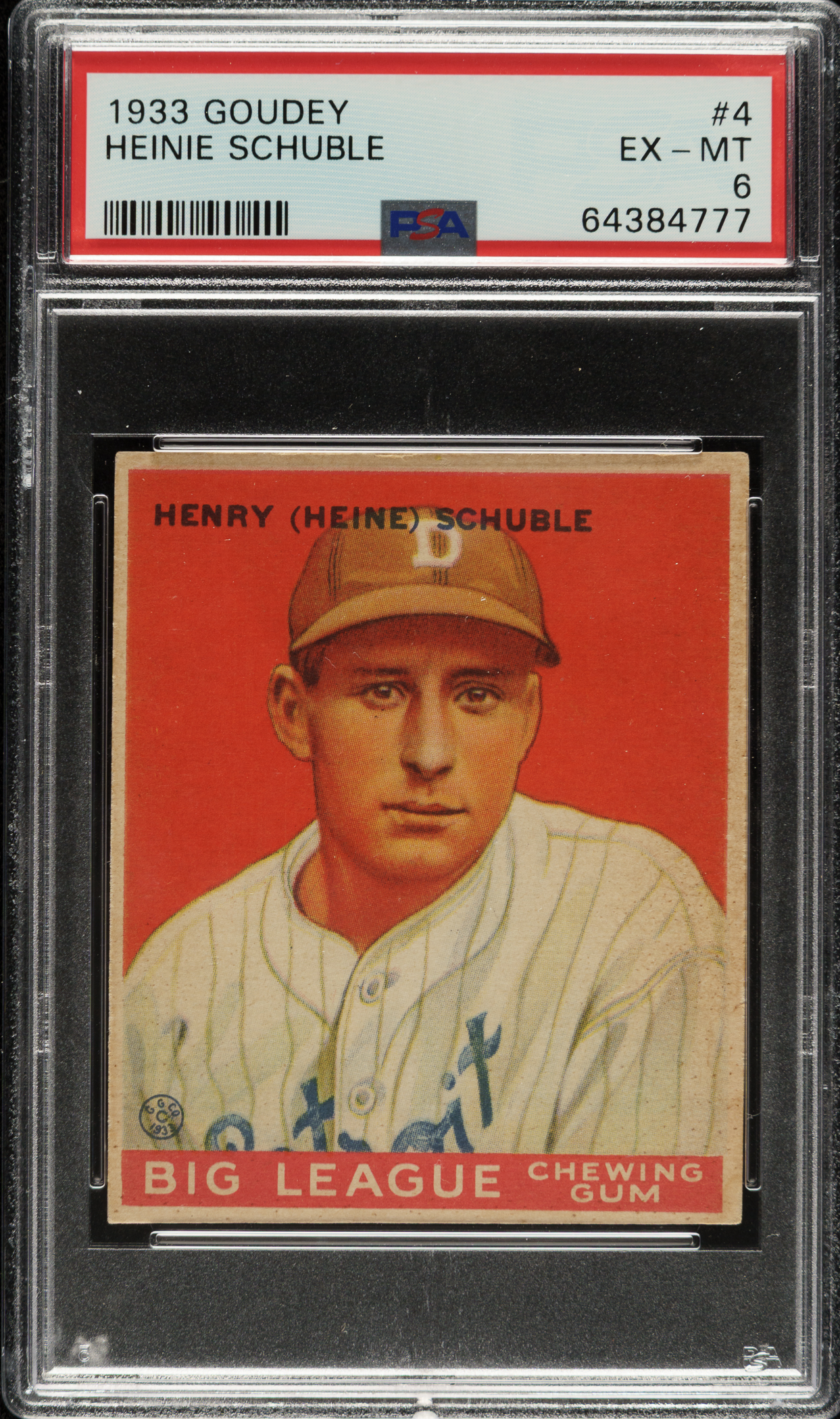 Lot # 687: 1933 R319 Goudey #4 Heinie Schuble PSA EX-MT 6