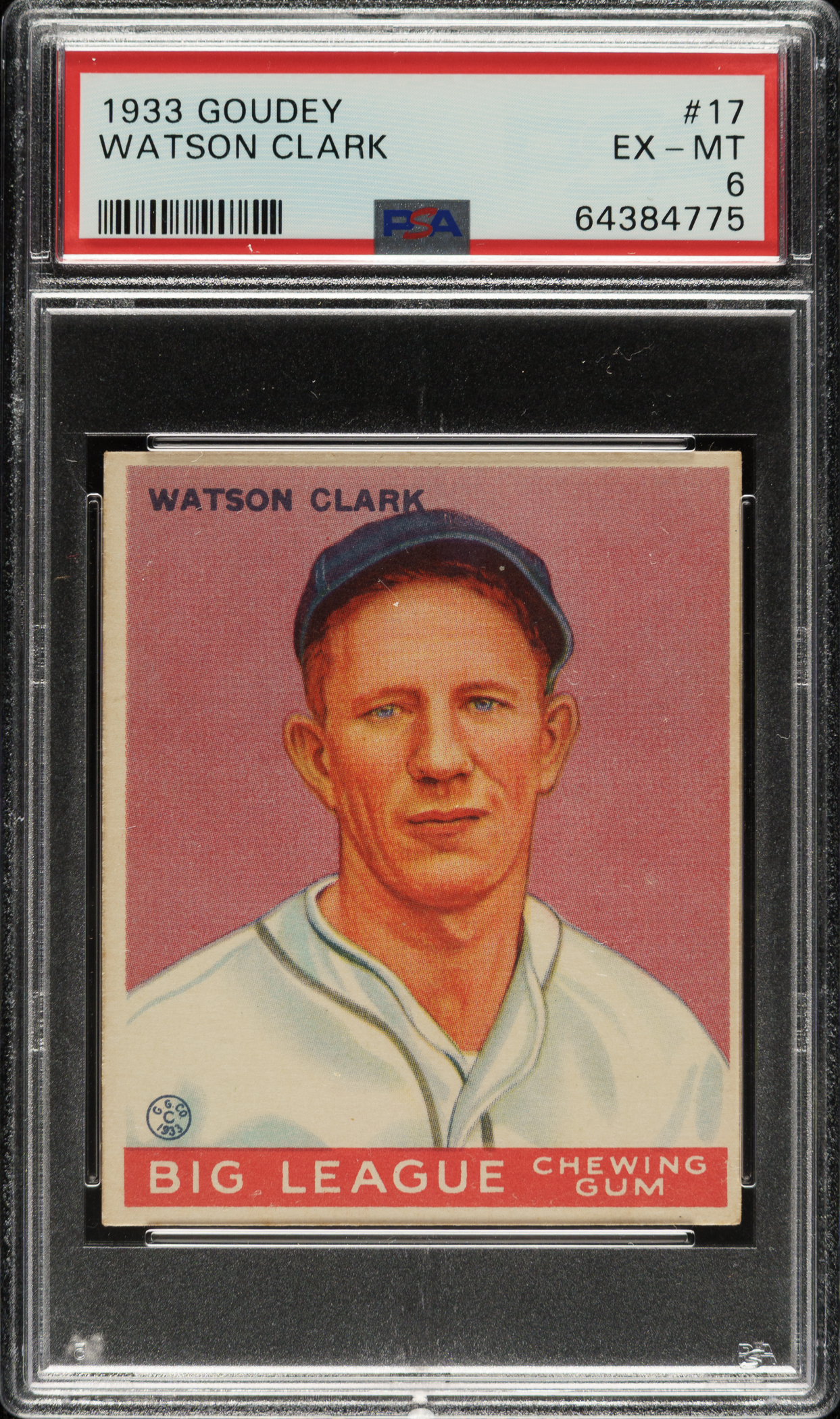 Lot # 700: 1933 R319 Goudey #17 Watson Clark PSA EX-MT 6