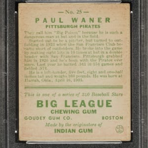 Graded EX 5 by PSA. Pittsburgh Pirates Hall of Famer Paul Waner.