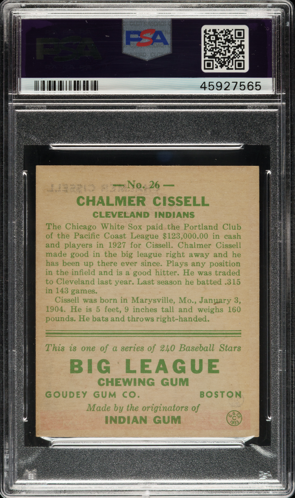 Lot # 711: 1933 R319 Goudey #26 Chalmer Cissell PSA EX 5