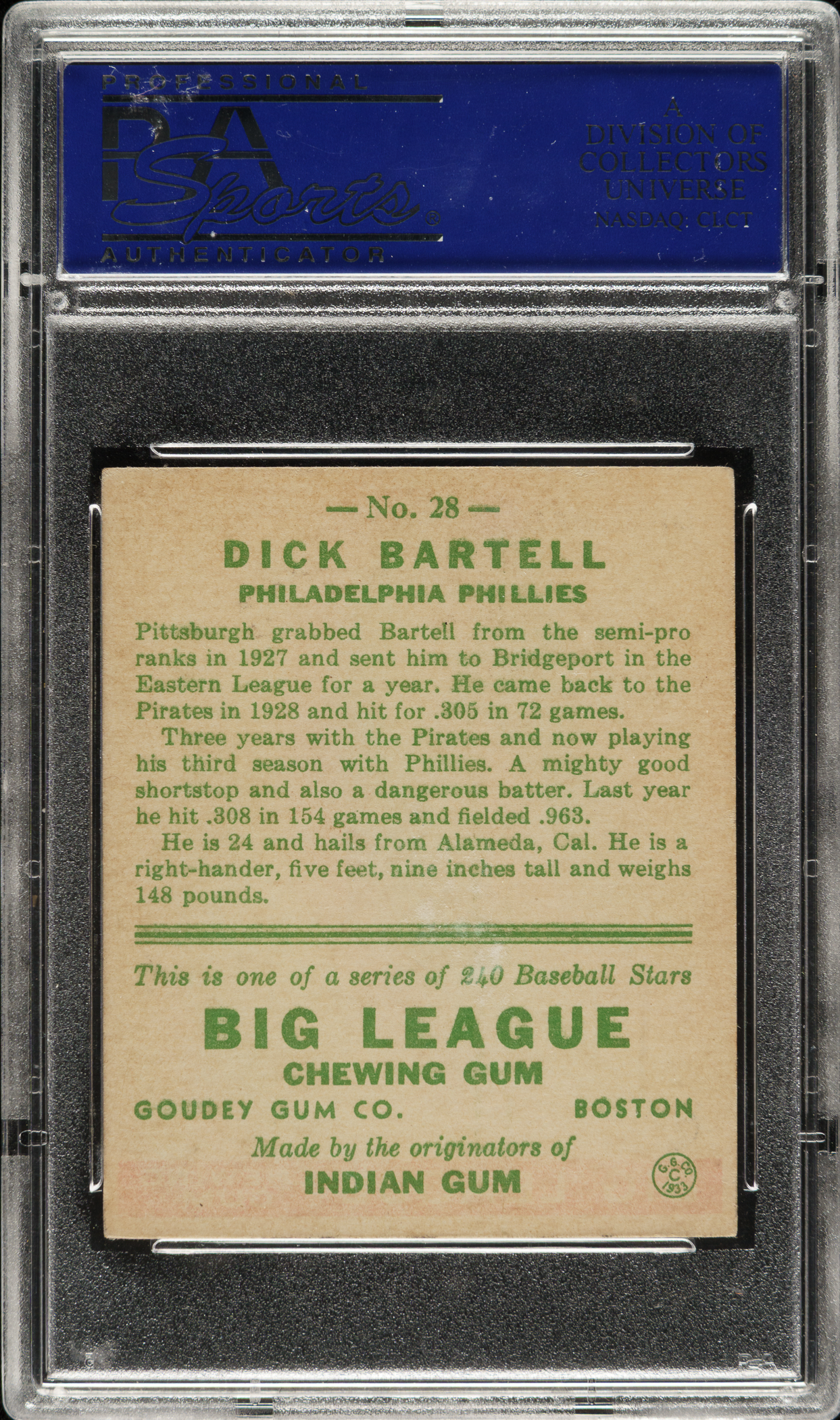 Lot # 713: 1933 R319 Goudey #28 Dick Bartell PSA EX-MT 6