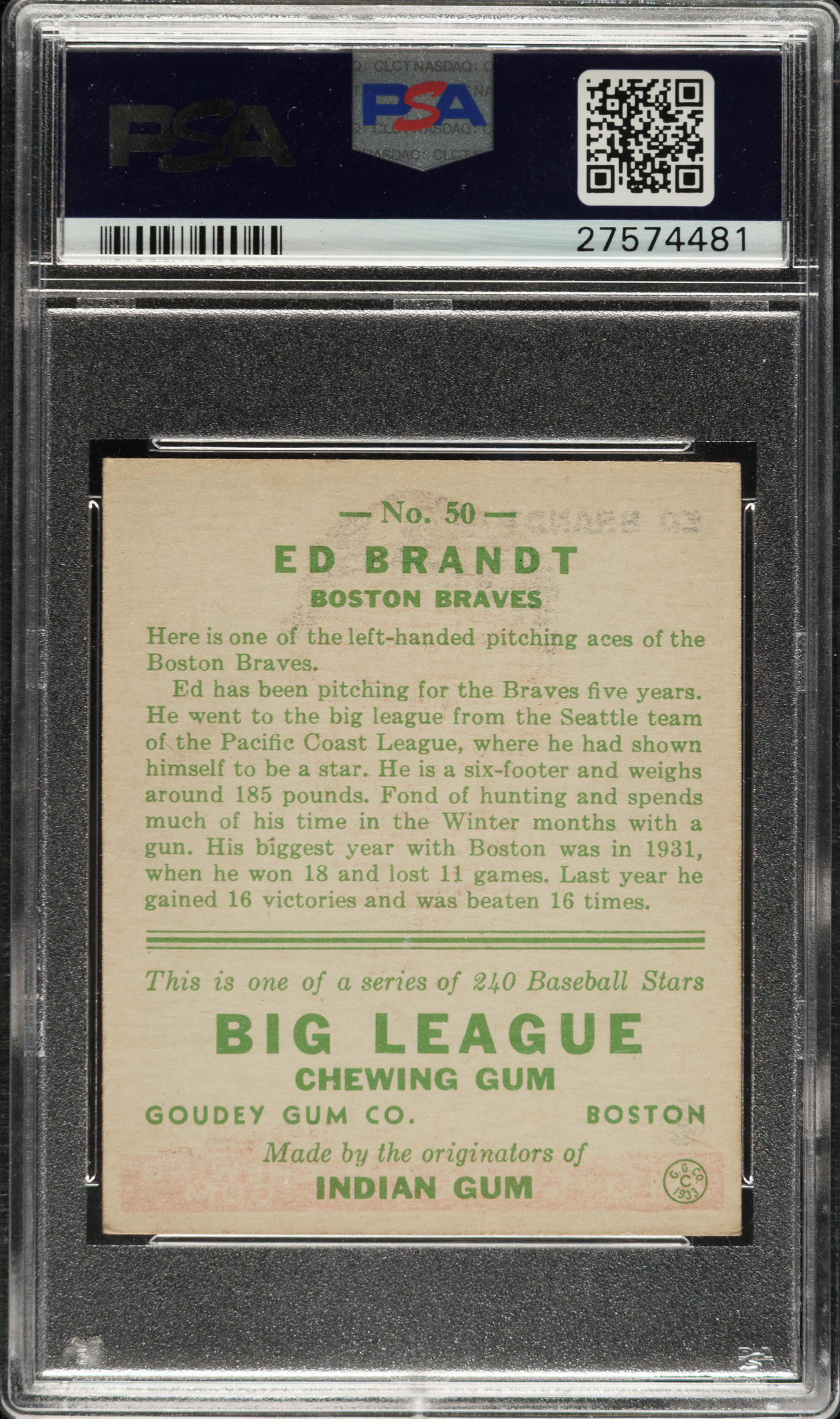Lot # 735: 1933 R319 Goudey #50 Ed Brandt PSA NM 7