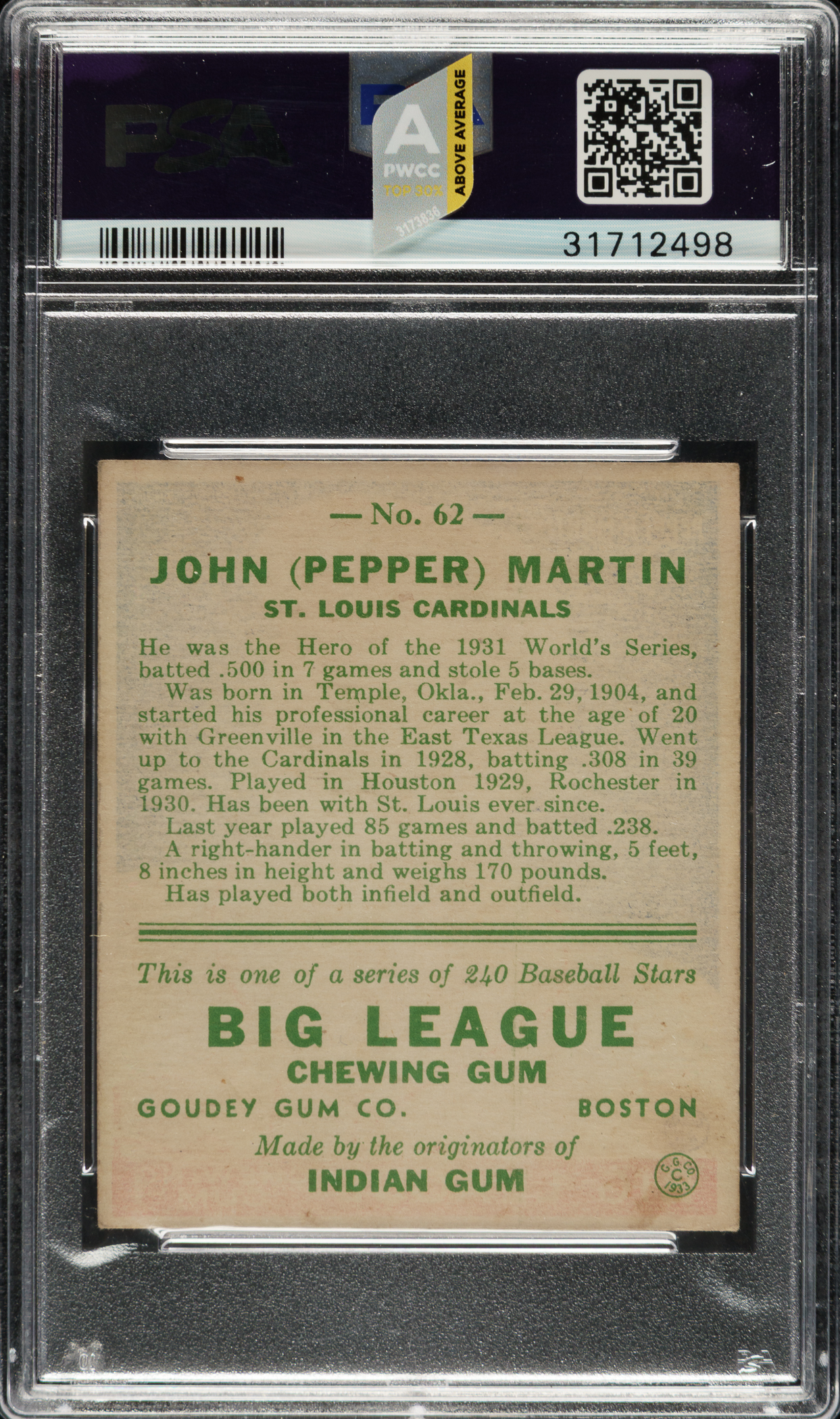 Graded NM 7 by PSA. St. Louis Cardinals.