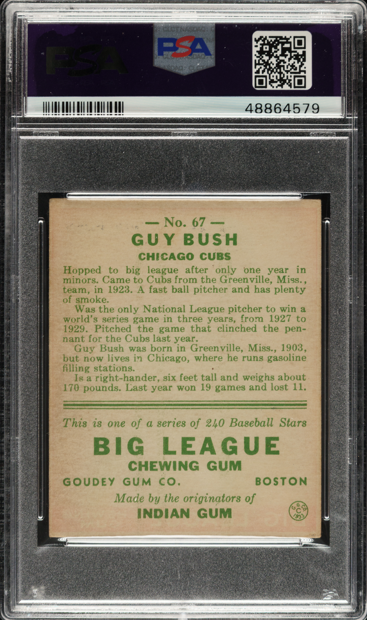 Lot # 756: 1933 R319 Goudey #67 Guy Bush PSA EX-MT 6