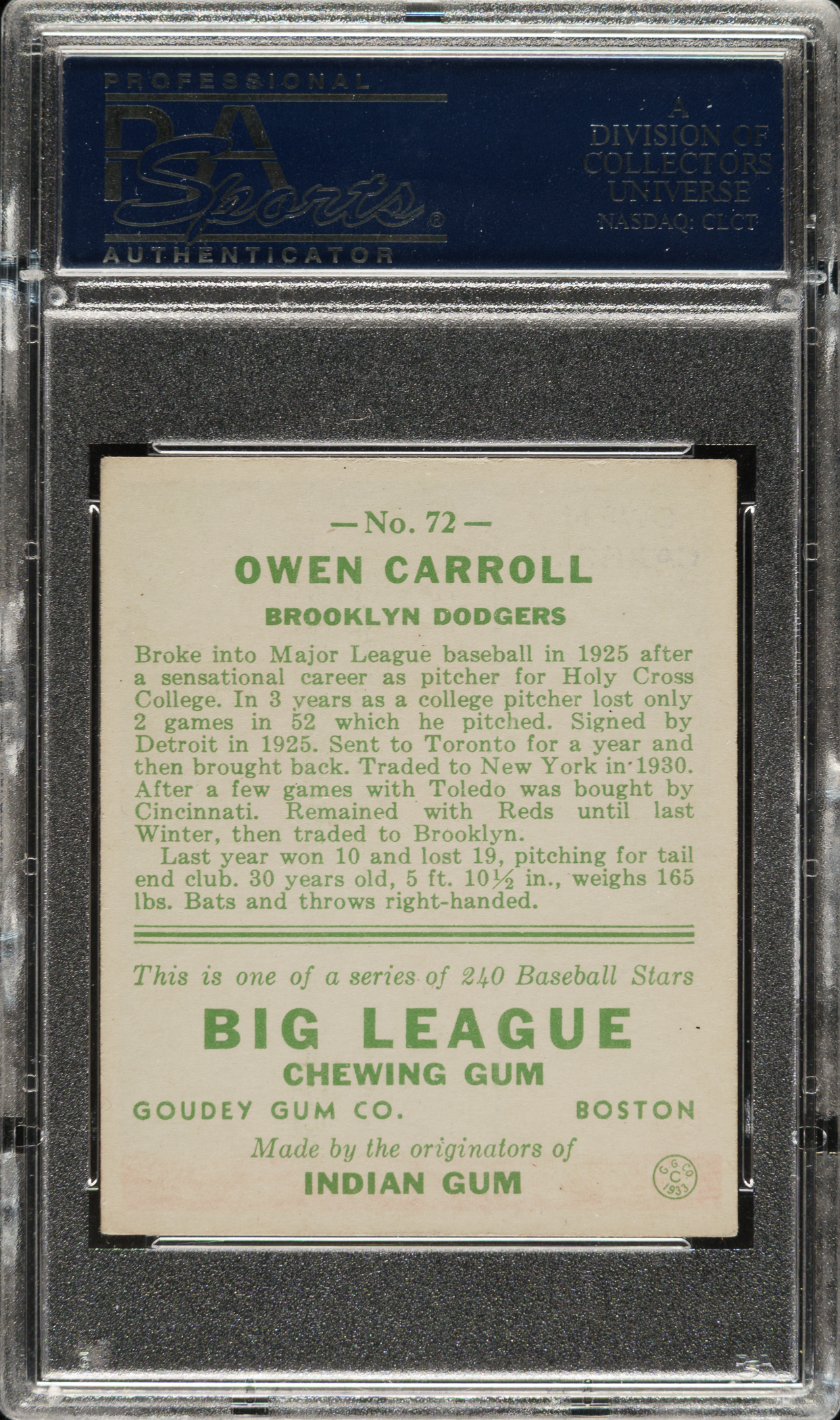 Graded NM 7 by PSA. Brooklyn Dodgers.