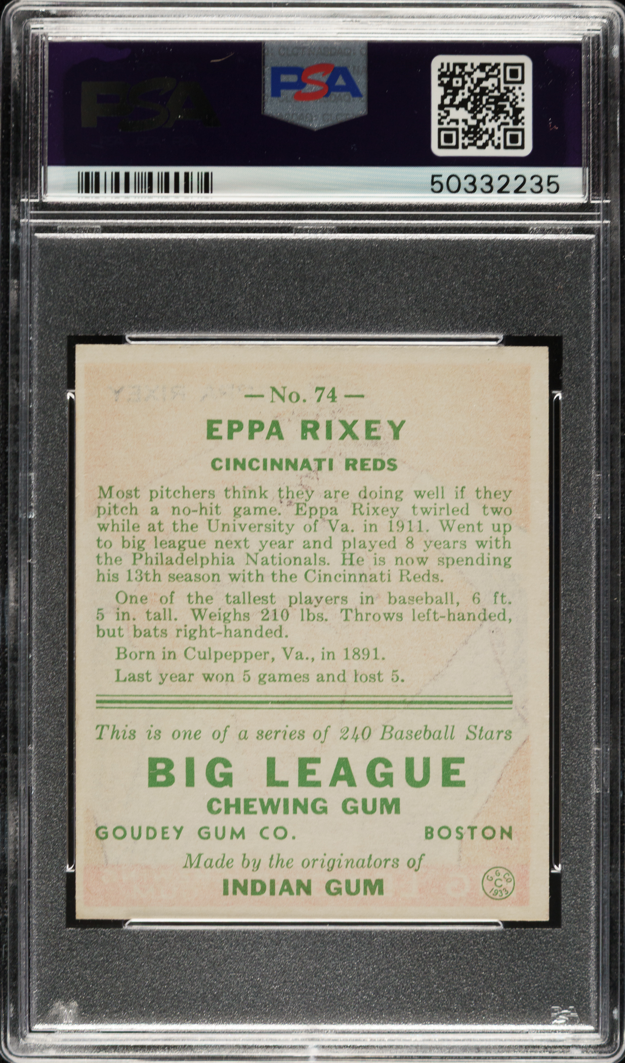 Graded NM 7 by PSA. Cincinnati Reds Hall of Famer Eppa Rixey.