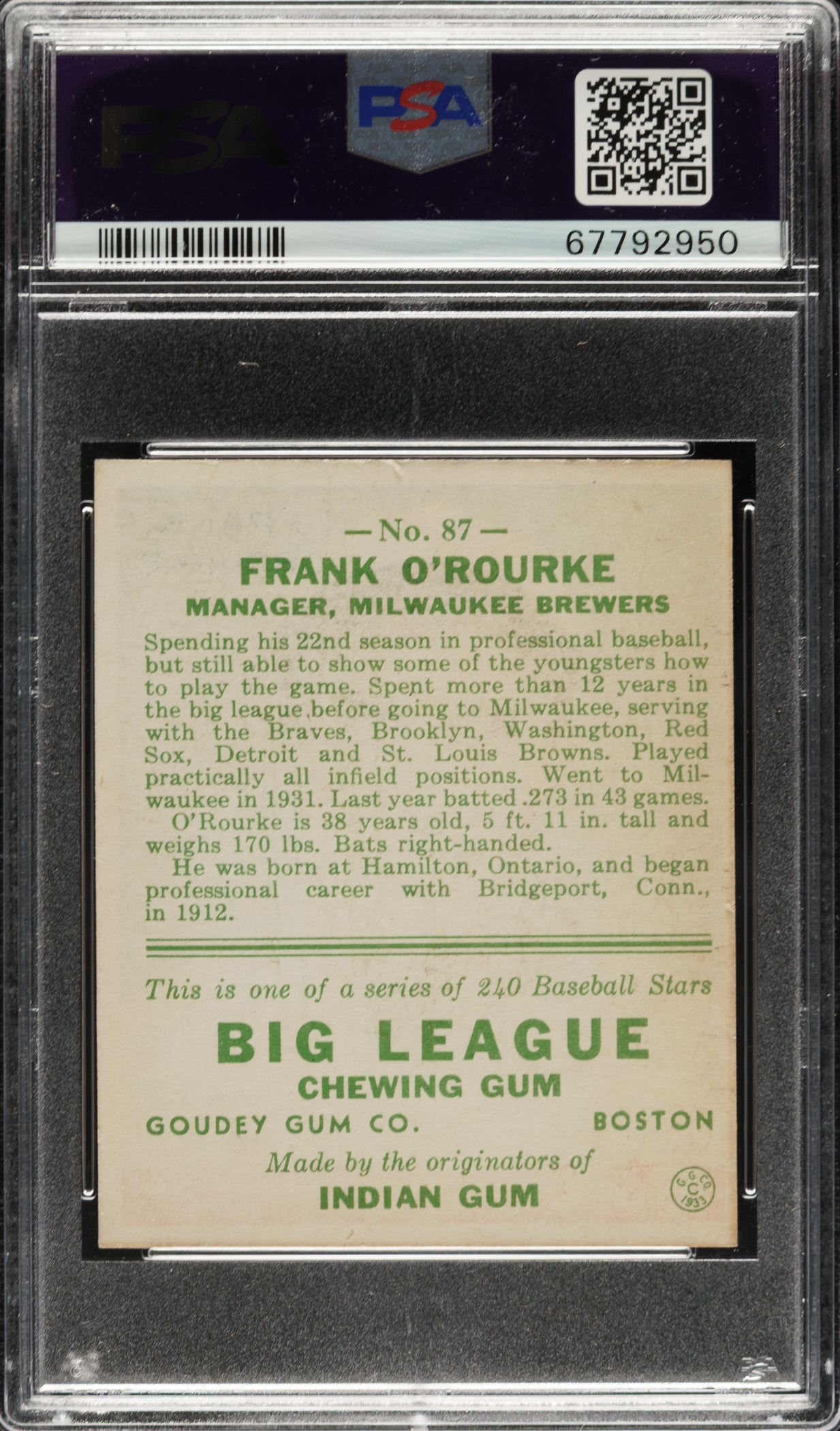 Graded NM-MT 8 by PSA. Milwaukee Brewers. Only two examples have been graded higher by PSA to date.