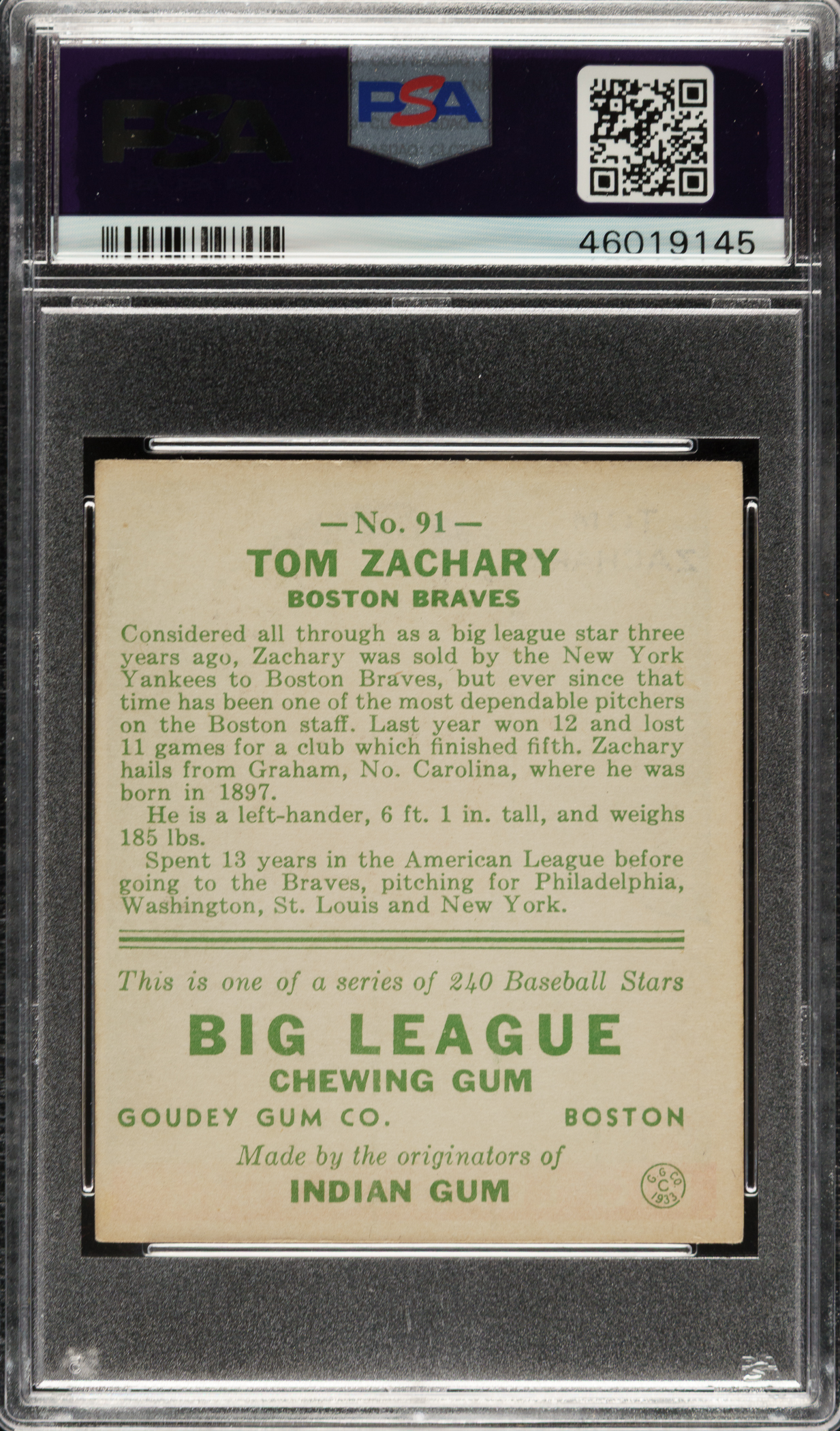 Graded EX 5 by PSA. Boston Braves.