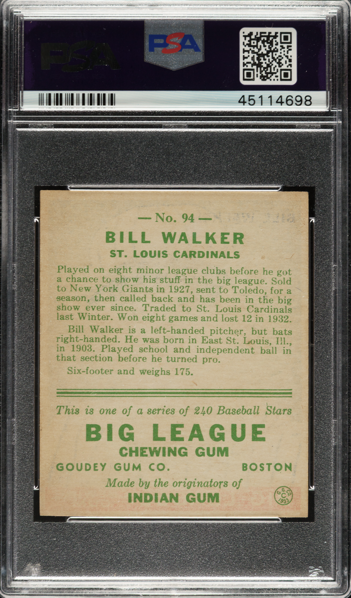 Lot # 786: 1933 R319 Goudey #94 Bill Walker PSA NM 7