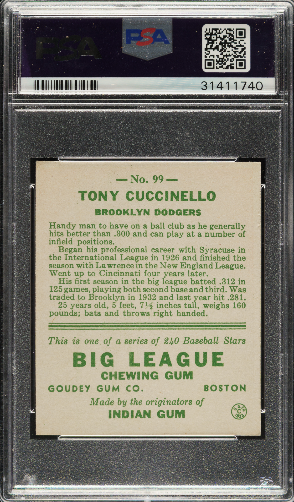 Lot # 791: 1933 R319 Goudey #99 Tony Cuccinello PSA NM 7