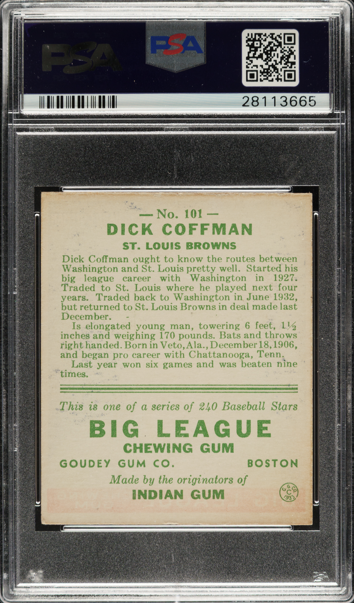 Lot # 793: 1933 R319 Goudey #101 Dick Coffman PSA NM 7