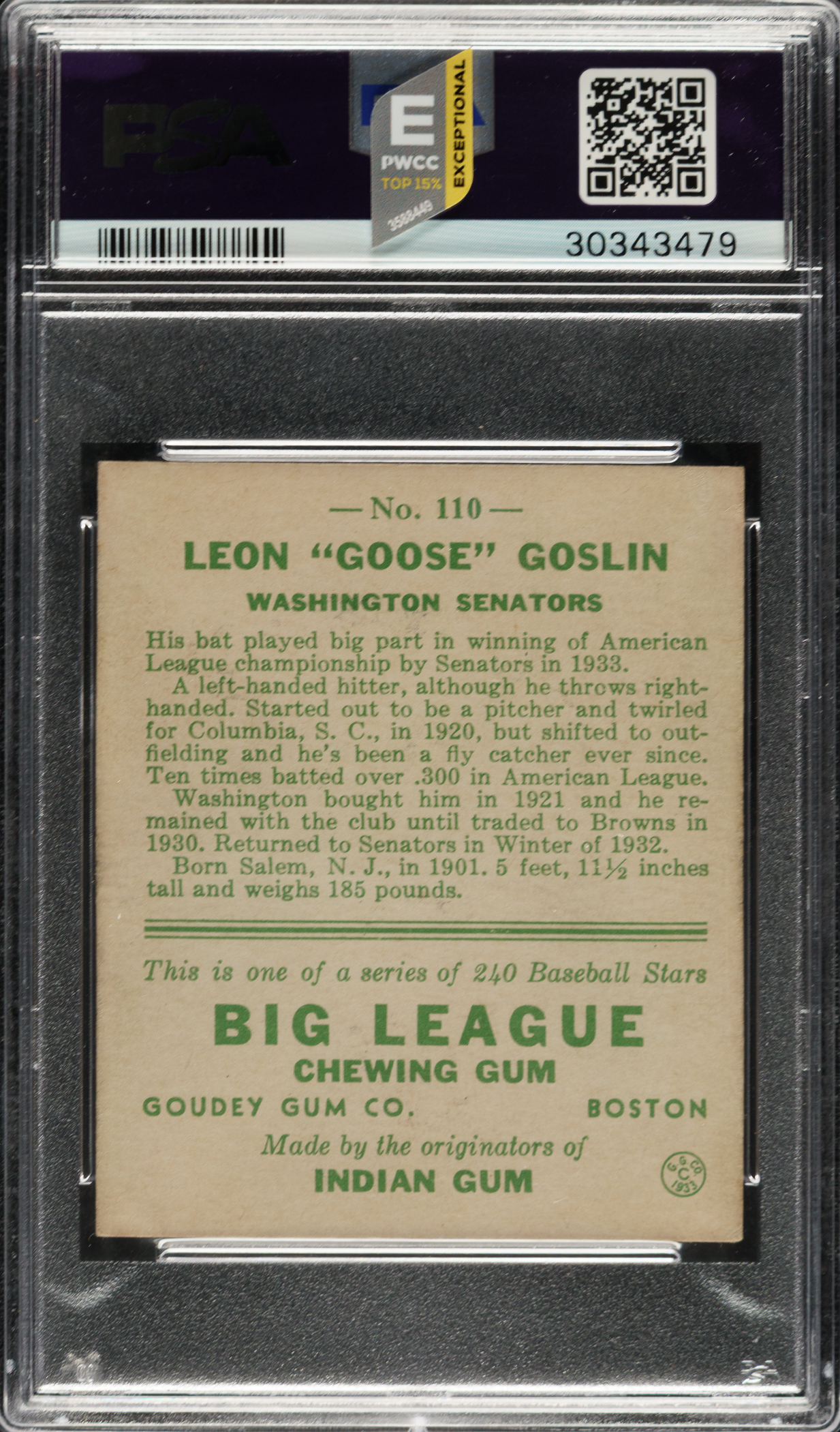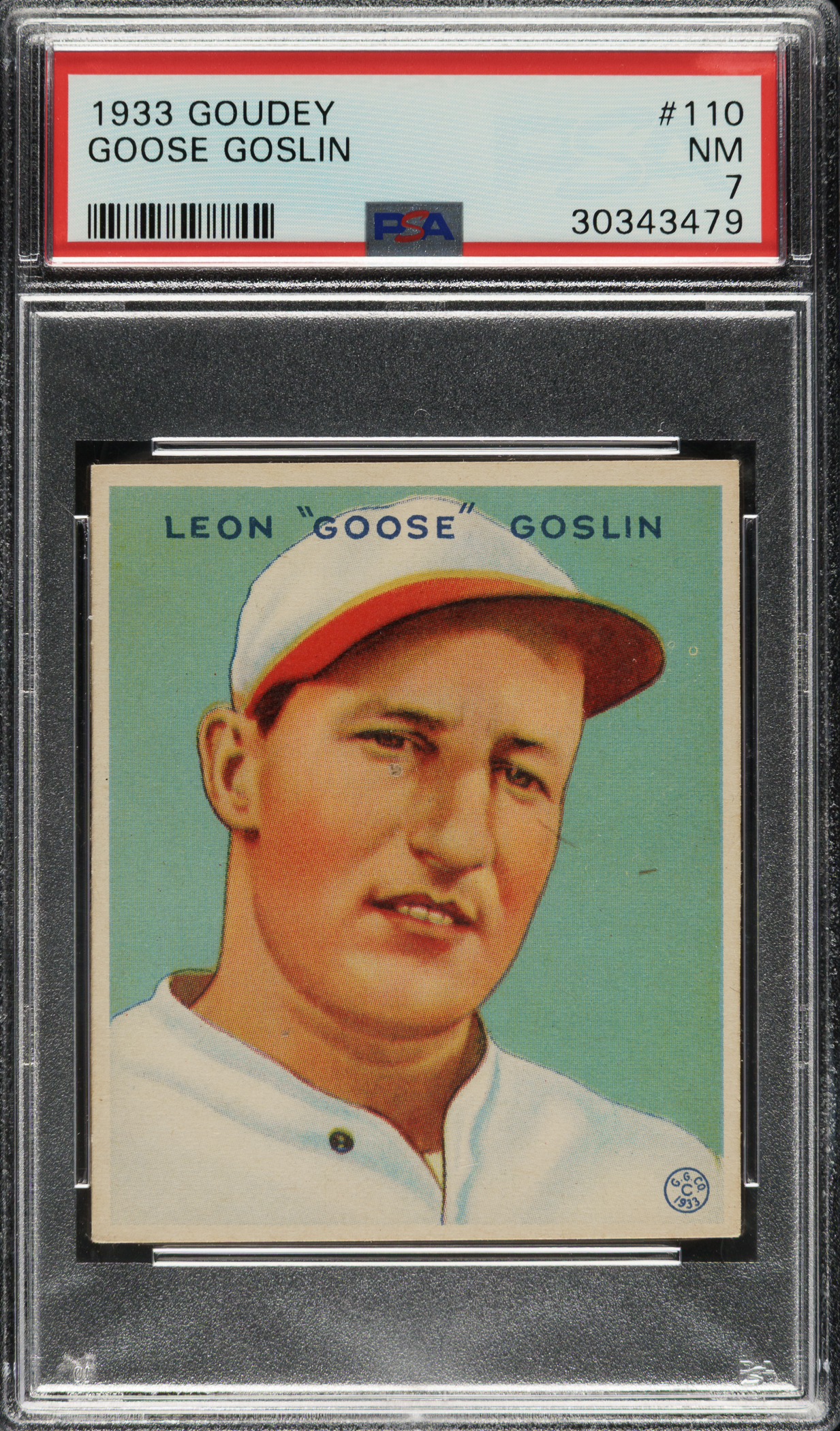 Graded NM 7 by PSA. Washington Senators Hall of Famer Goose Goslin.