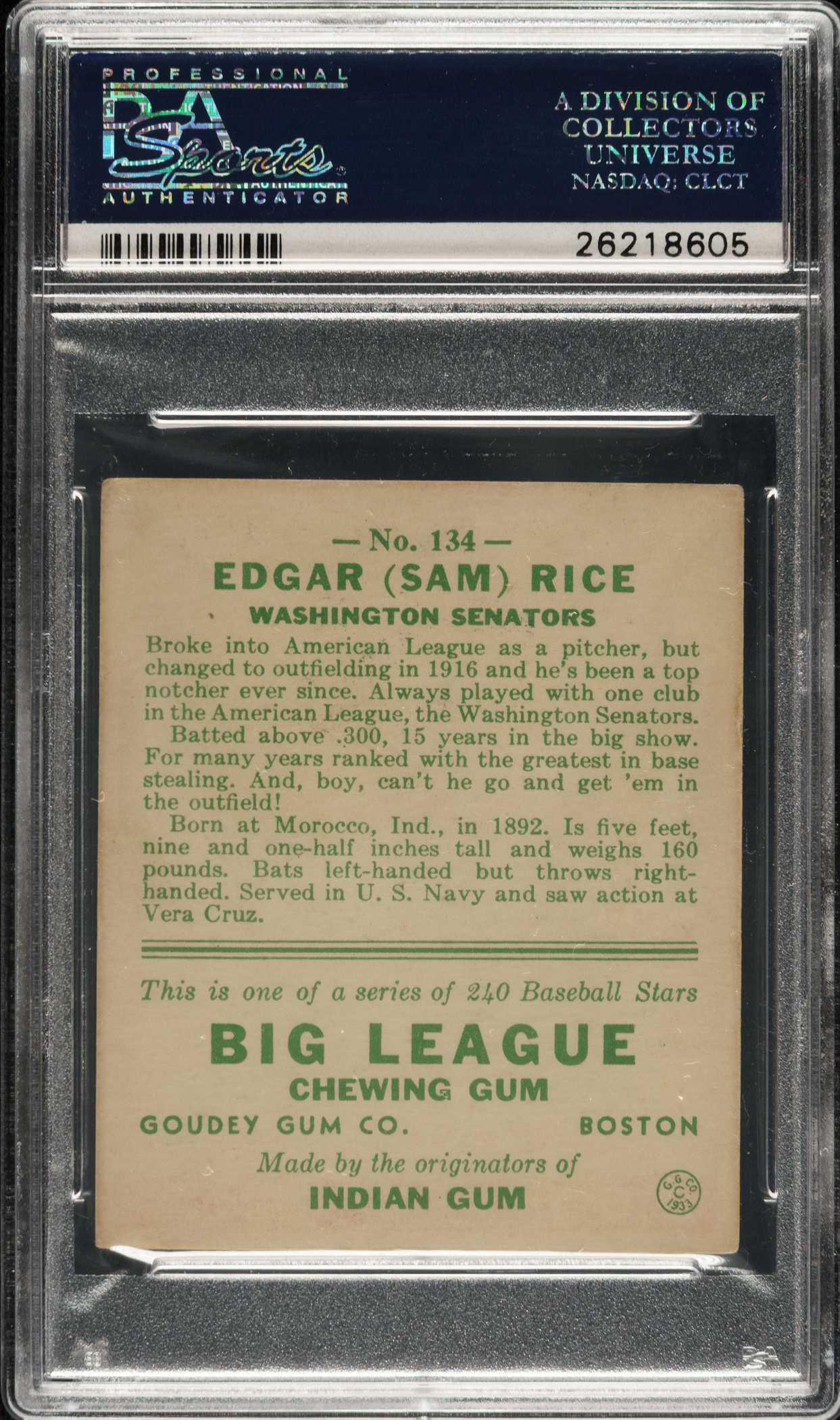 Graded EX 5 by PSA. Washington Senators Hall of Famer Sam Rice.