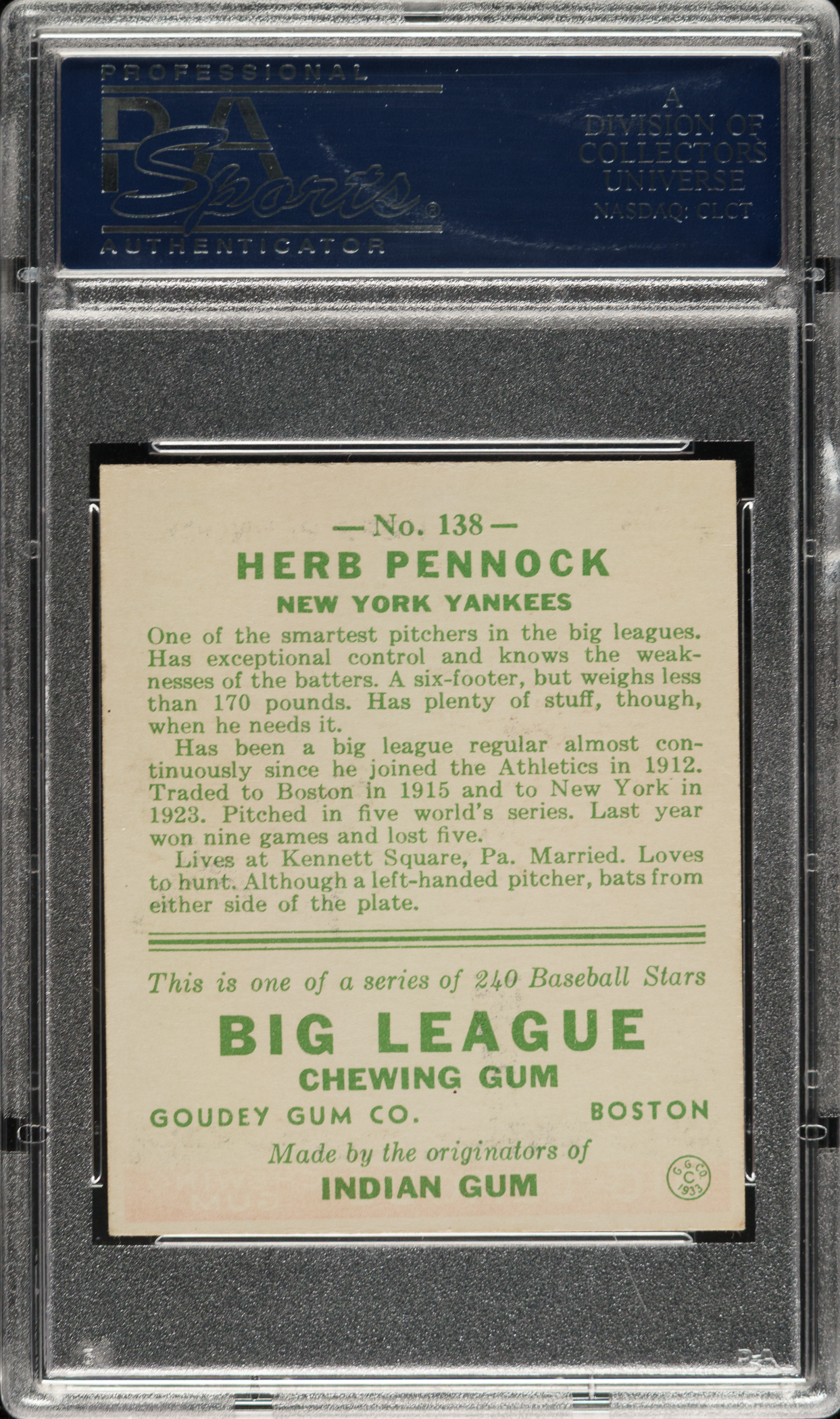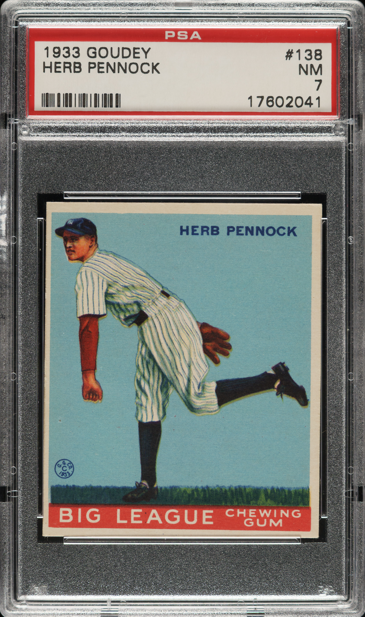 Graded NM 7 by PSA. New York Yankees Hall of Famer Herb Pennock.
