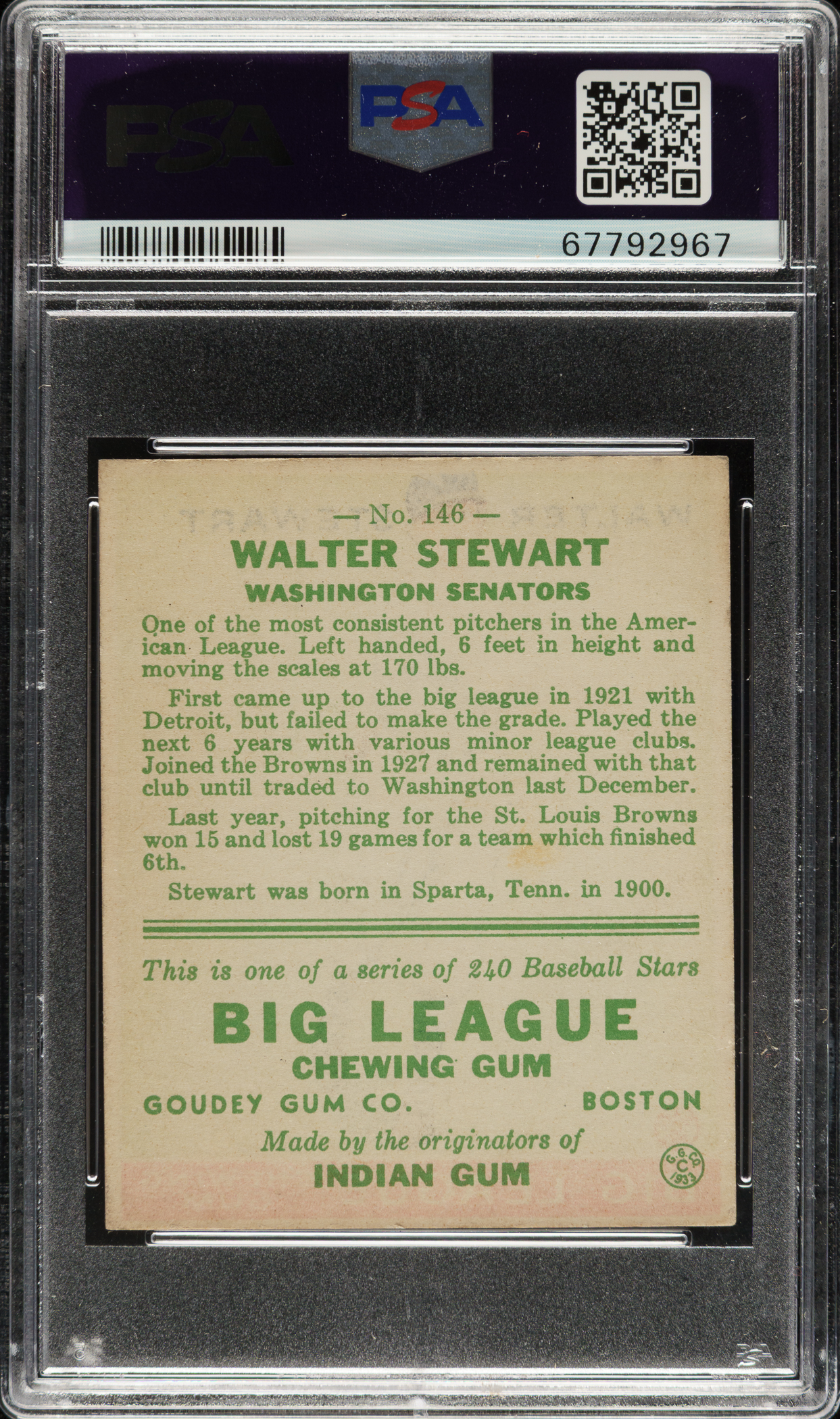 Graded NM-MT 8 by PSA. Washington Senators. Out of 324 examples graded to date, only one card has ever been graded higher by PSA.
