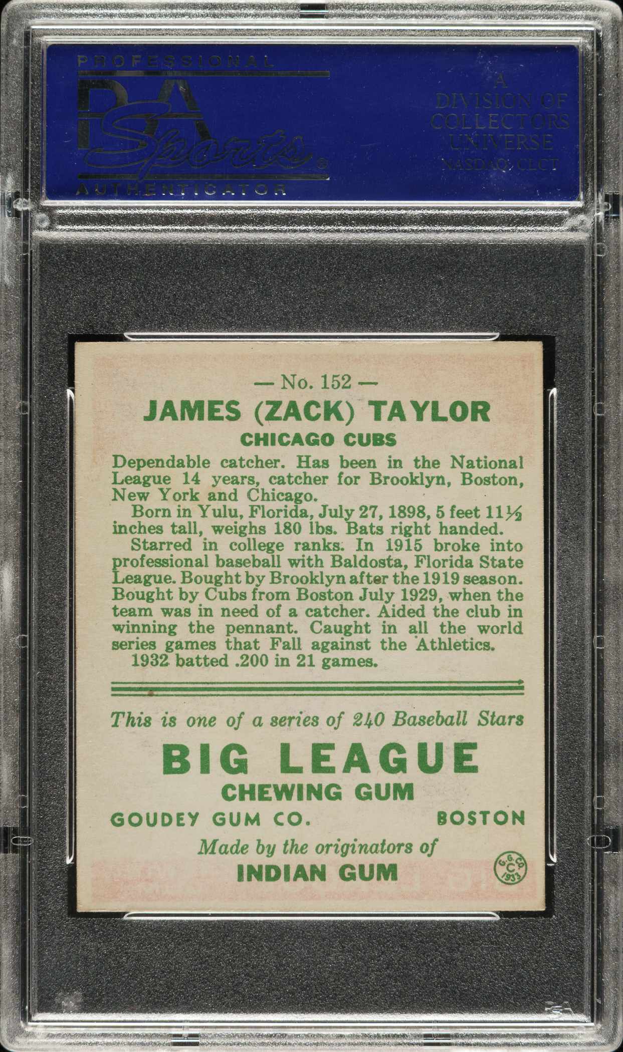 Lot # 853: 1933 R319 Goudey #152 Zack Taylor PSA NM 7