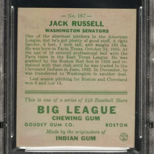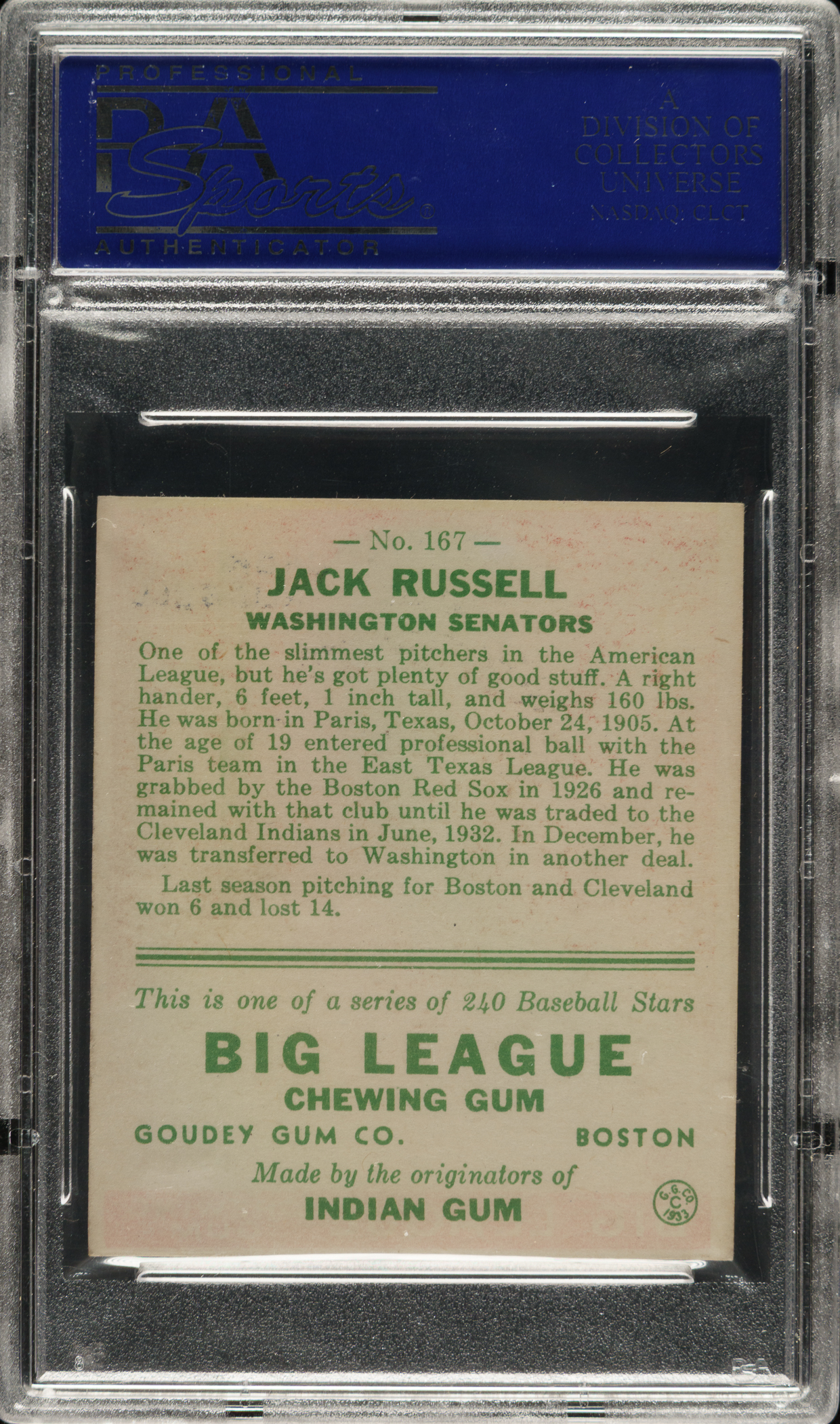 Lot # 868: 1933 R319 Goudey #167 Jack Russell PSA NM 7
