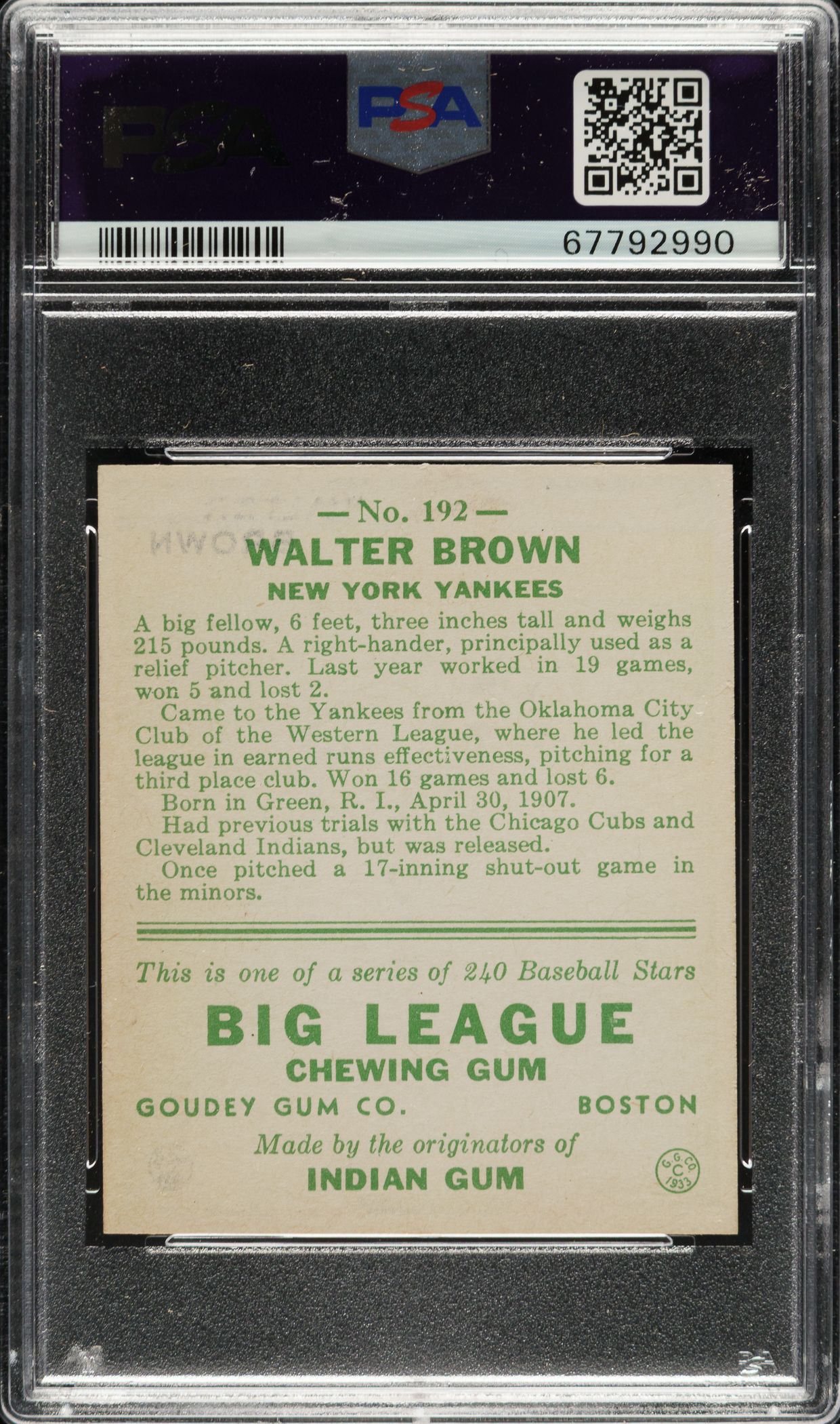 Graded NM 7 by PSA. New York Yankees.
