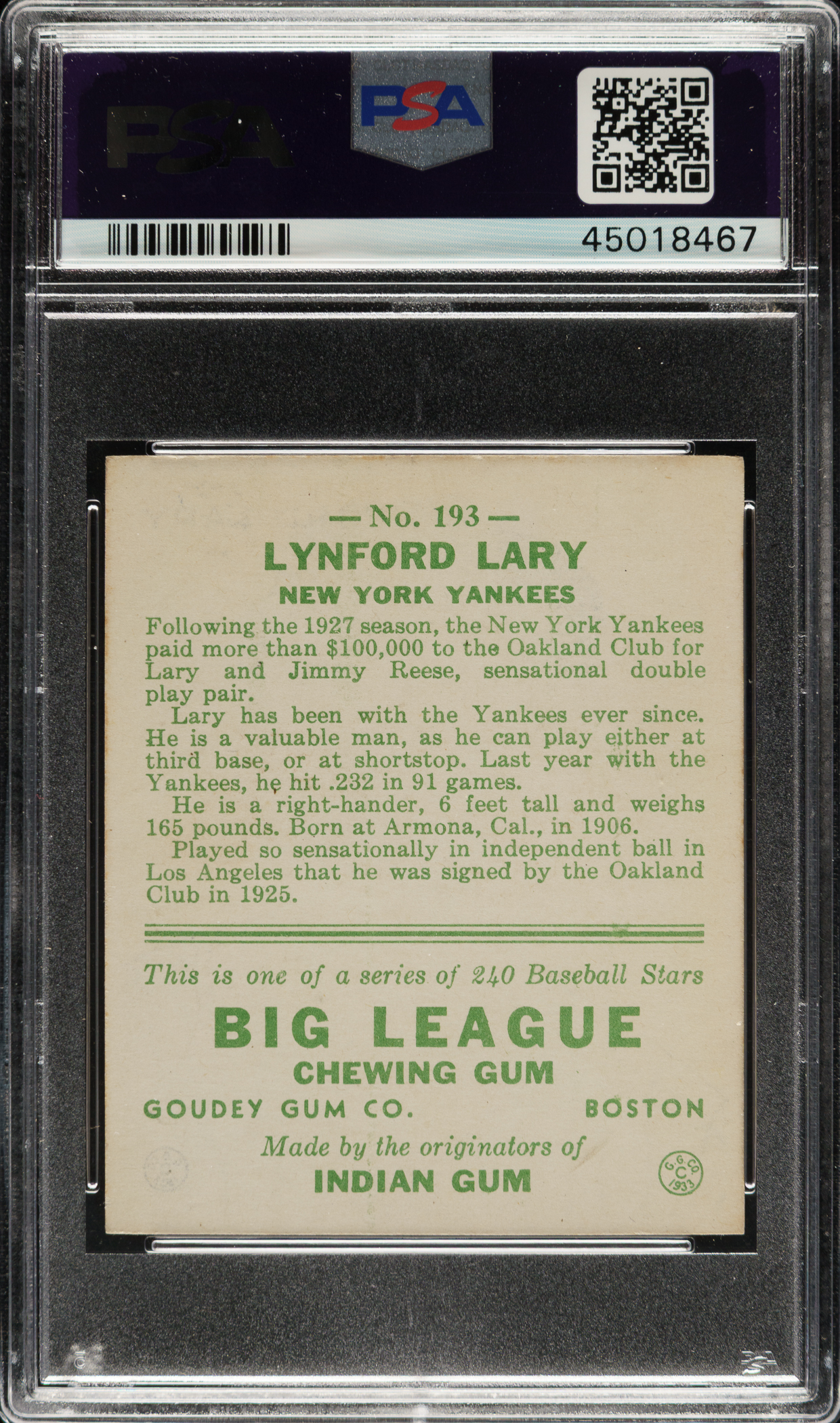 Graded NM+ 7.5 by PSA. New York Yankees.