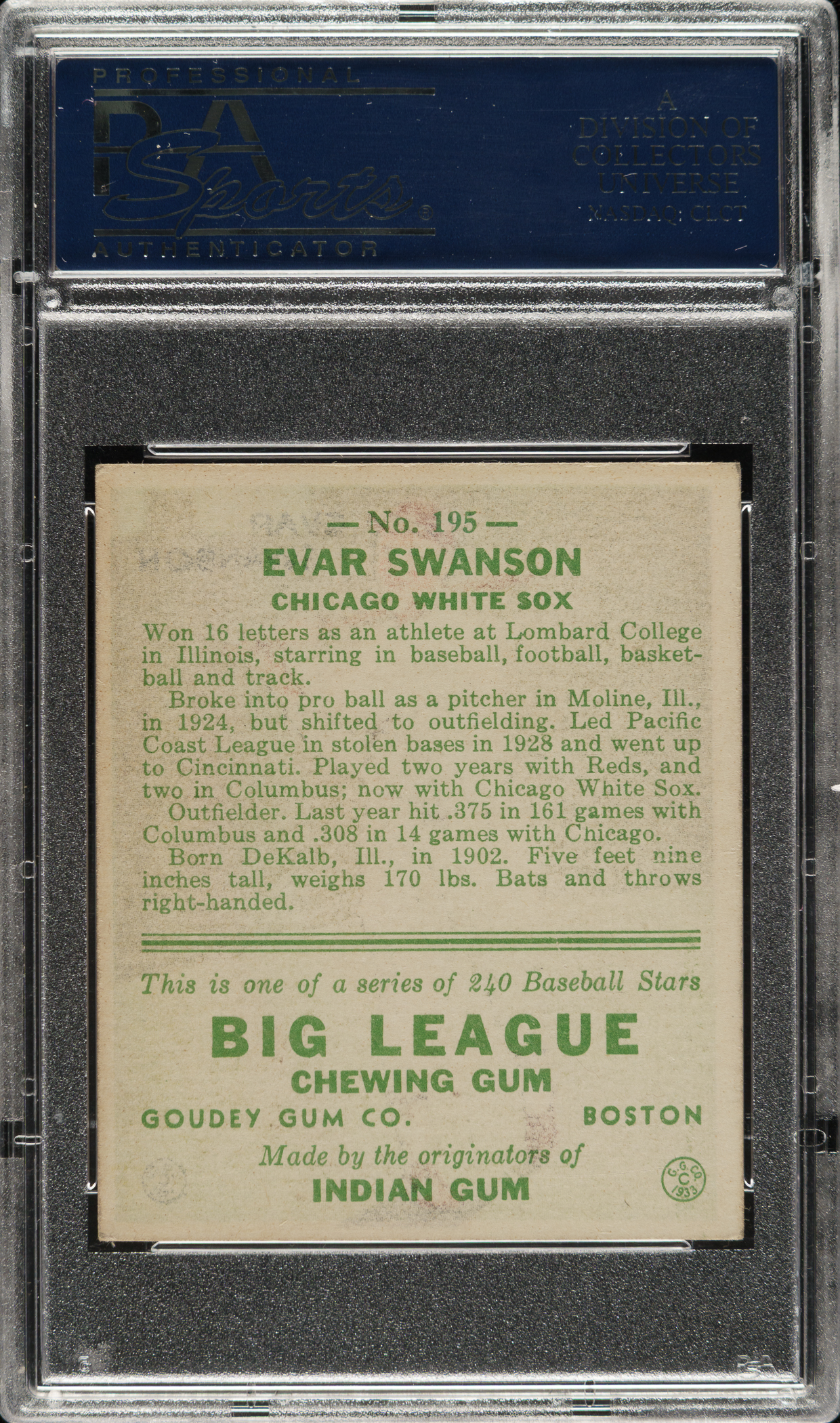 Lot # 900: 1933 R319 Goudey #195 Evar Swanson PSA EX-MT 6