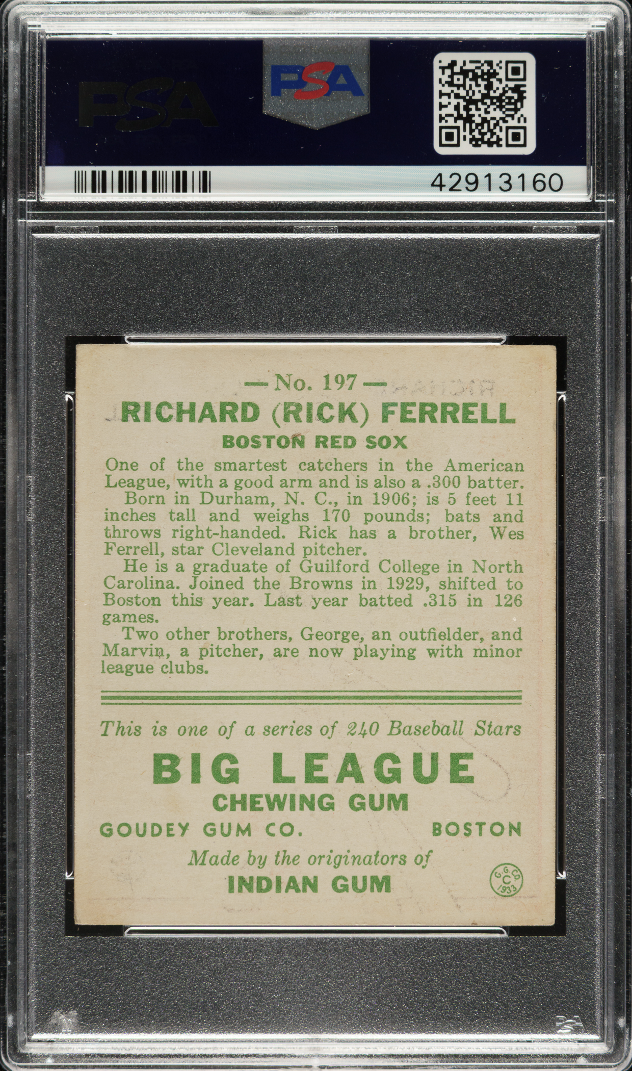 Graded EX 5 by PSA. Boston Red Sox Hall of Famer Rick Ferrell.