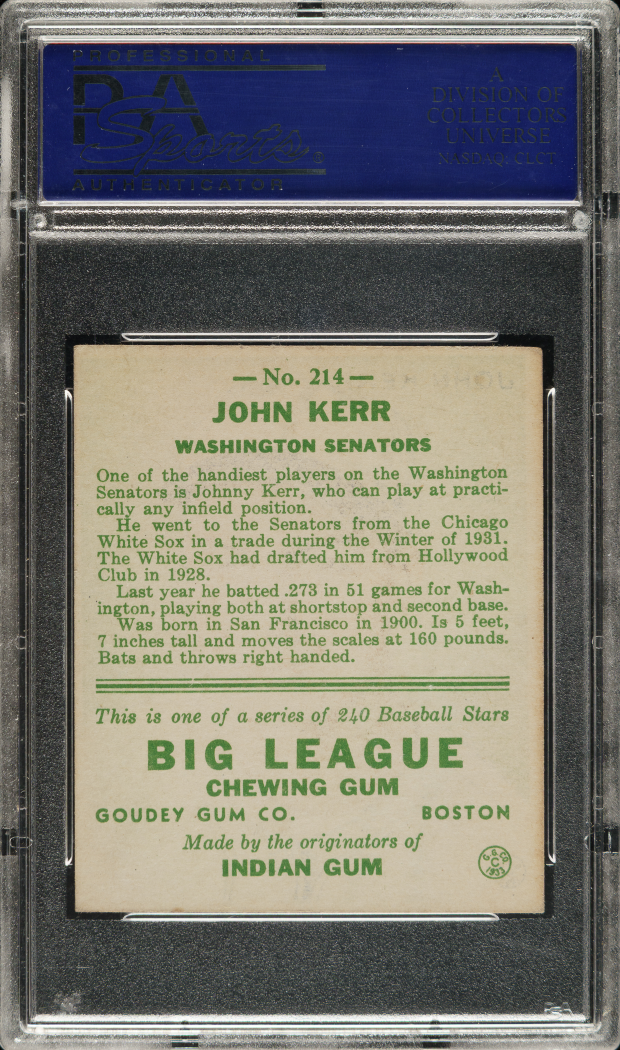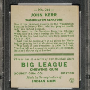 Lot # 919: 1933 R319 Goudey #214 Buddy Kerr PSA EX-MT 6