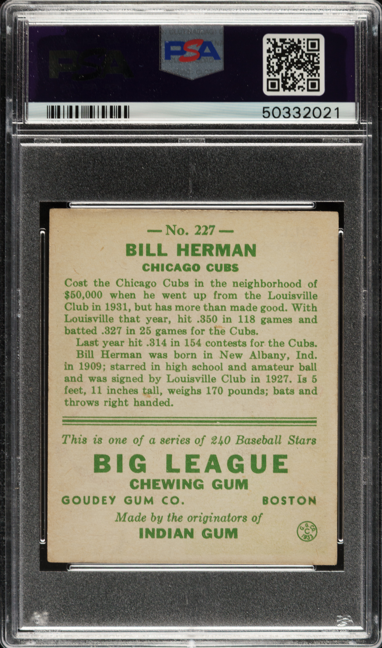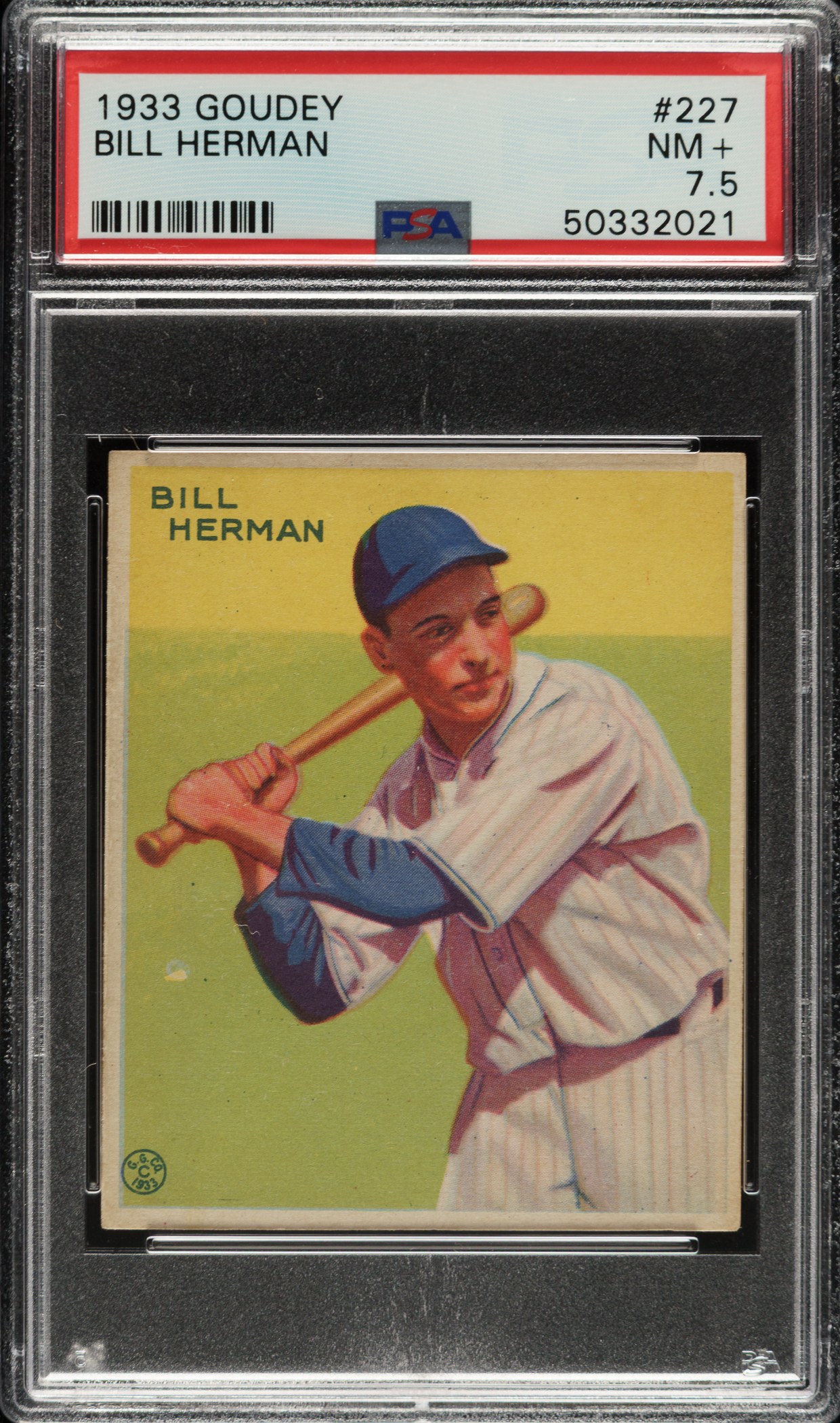 Graded NM+ 7.5 by PSA. Chicago Cubs Hall of Famer Billy Herman.