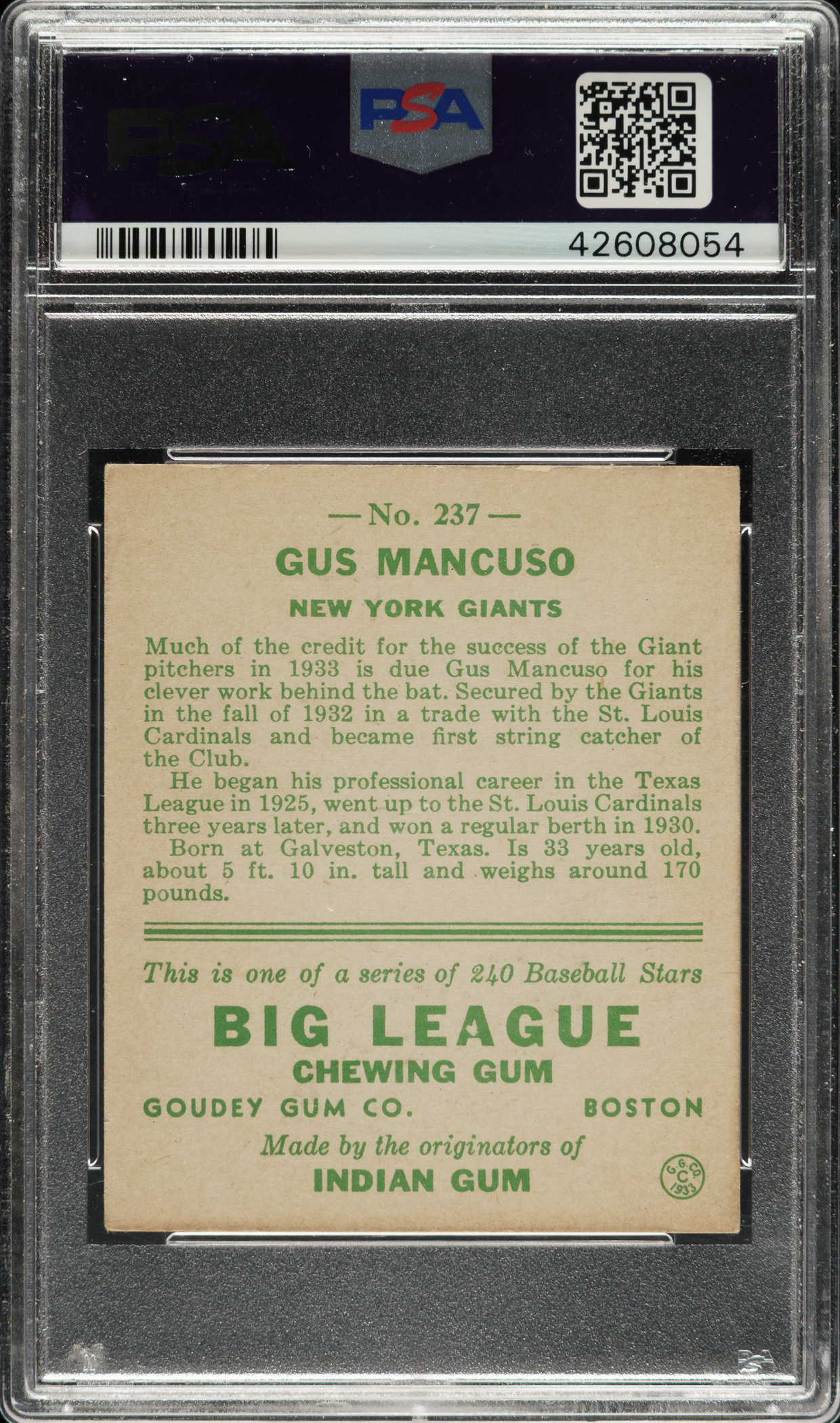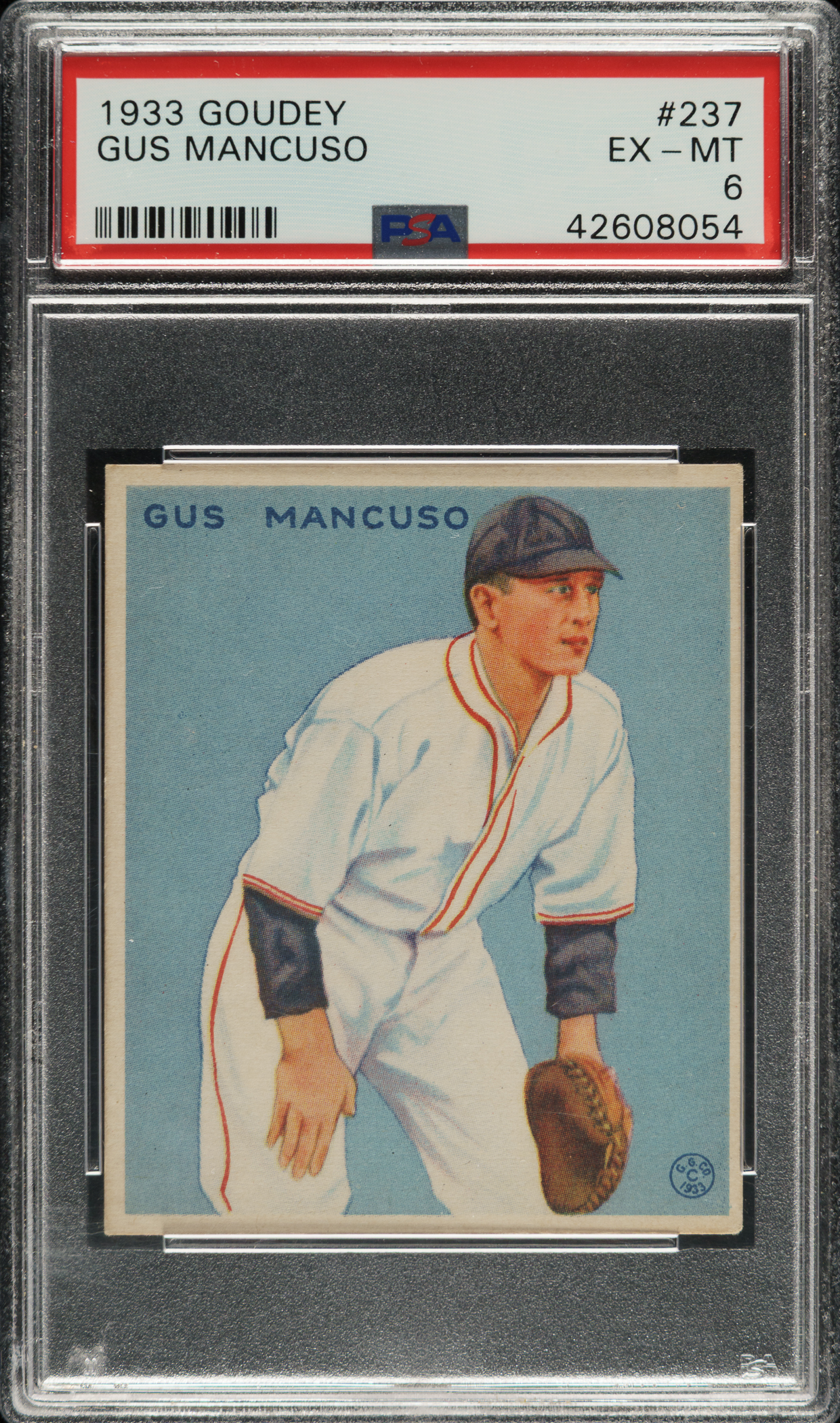 Lot # 942: 1933 R319 Goudey #237 Gus Mancuso PSA EX-MT 6