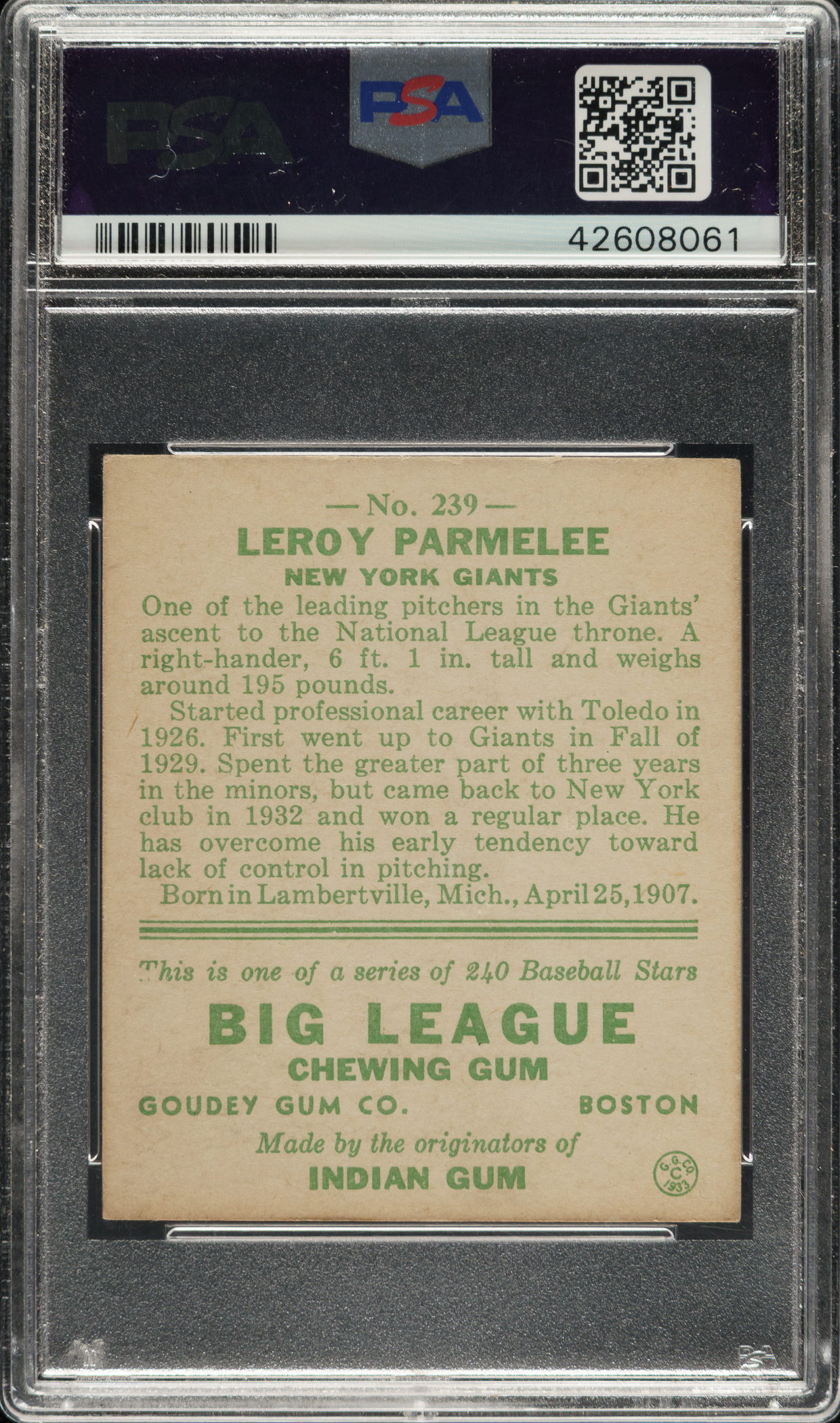 Lot # 944: 1933 R319 Goudey #239 Roy Parmelee PSA EX-MT 6