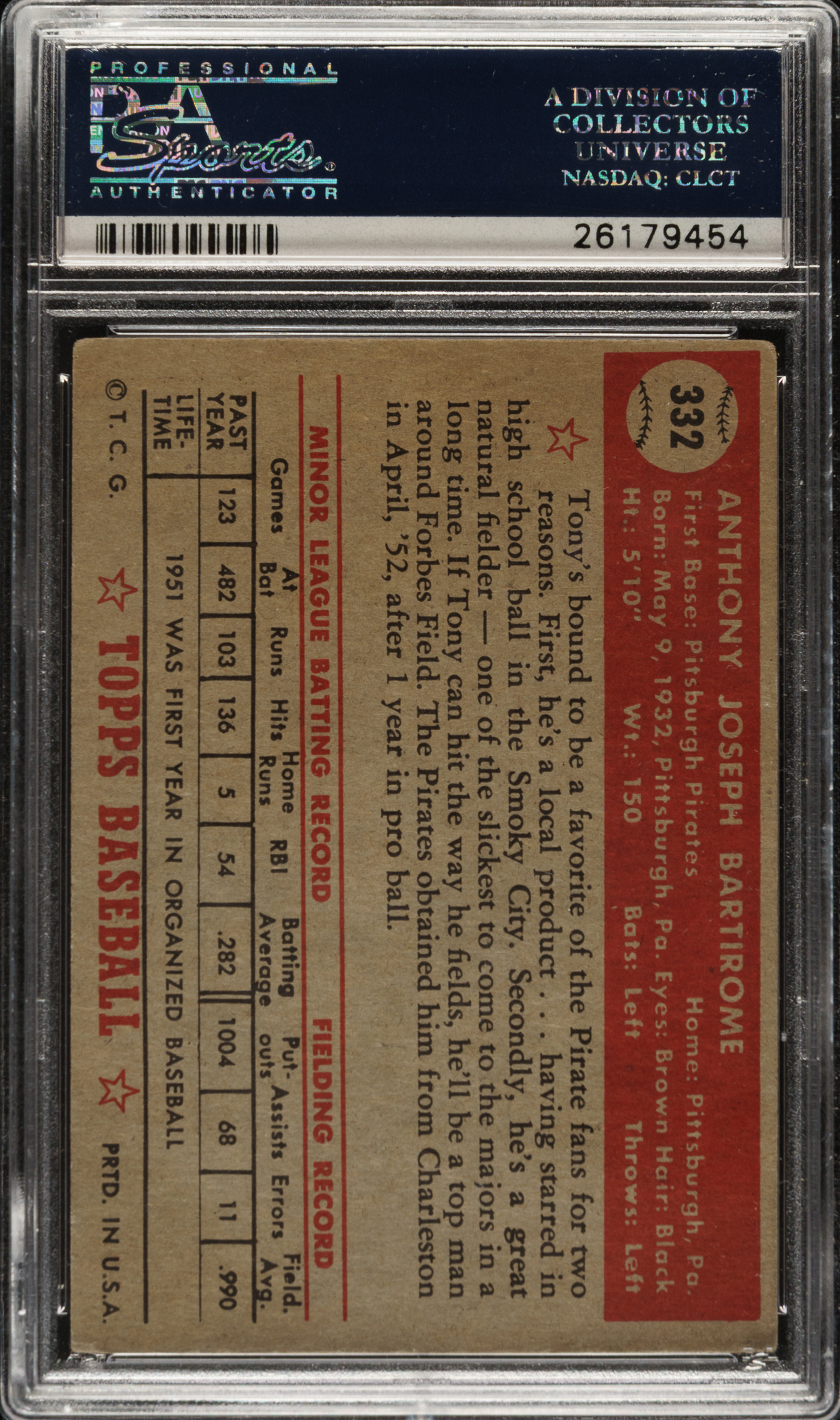 Lot # 2540: 1952 Topps #332 Tony Bartirome High Number PSA VG-EX 4