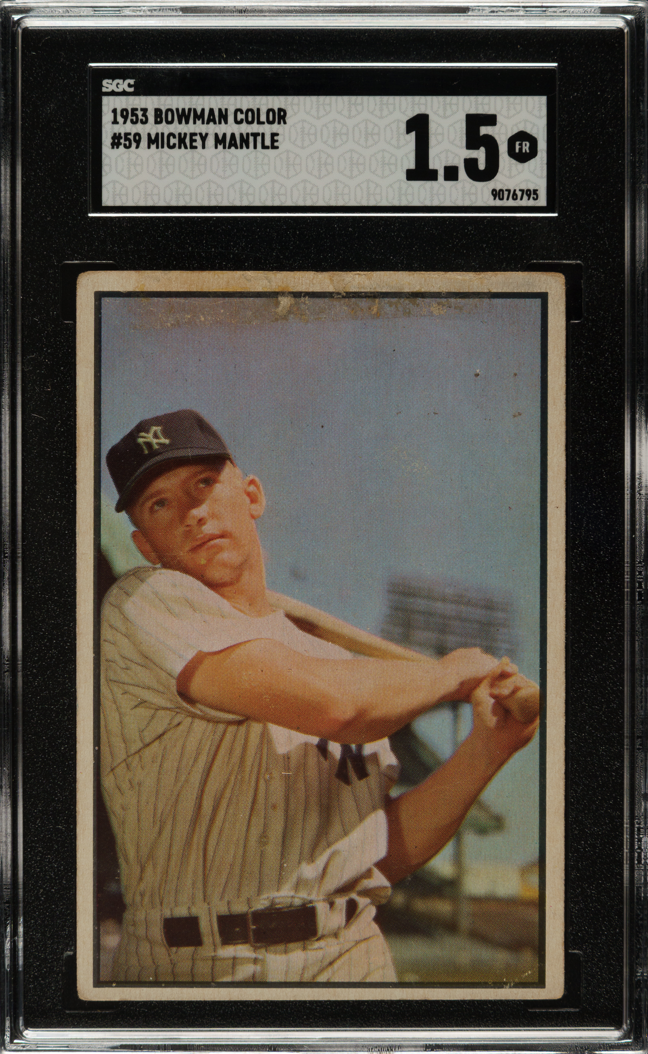 Lot # 2561: 1953 Bowman Color #59 Mickey Mantle SGC FAIR 1.5