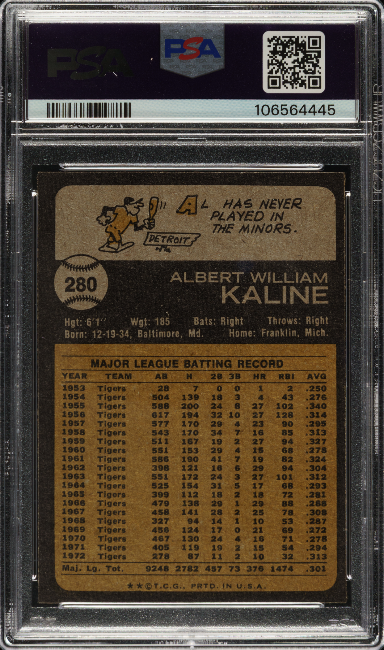 Graded MINT 9 by PSA. Detroit Tigers Hall of Famer Al Kaline.