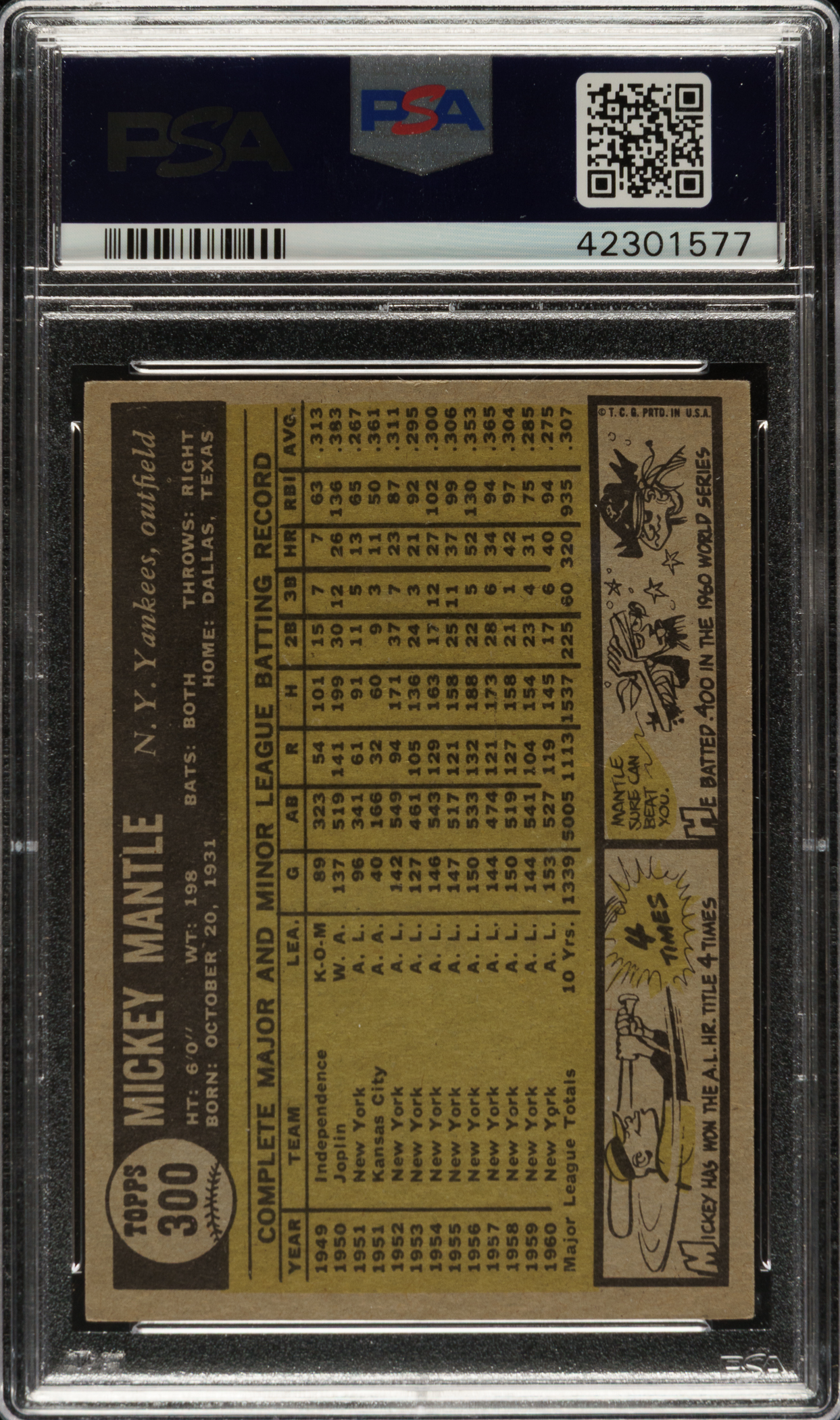 Graded EX+ 5.5 by PSA. New York Yankees Hall of Famer Mickey Mantle.