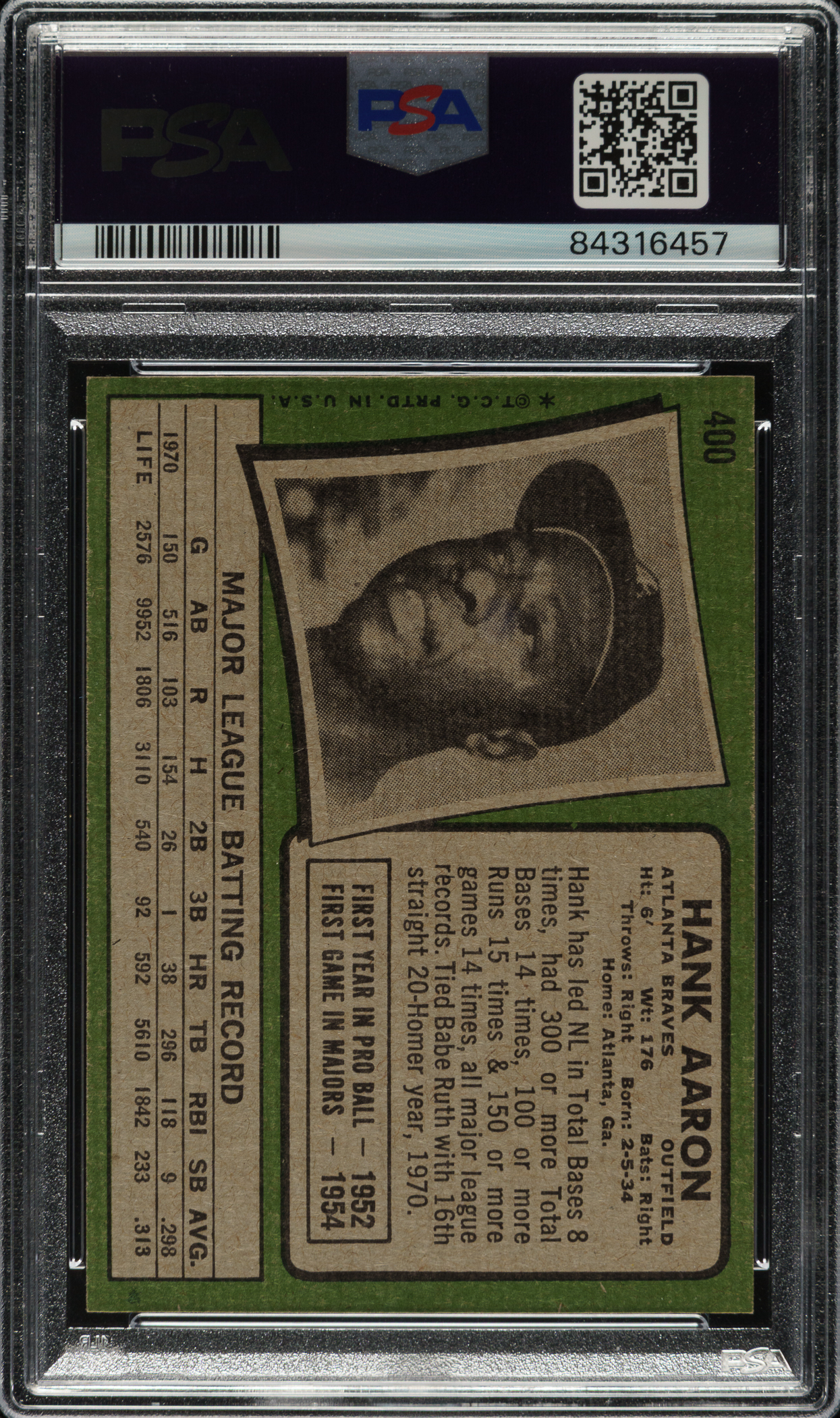 Lot # 3162: 1971 Topps #400 Hank Aaron PSA NM+ 7.5