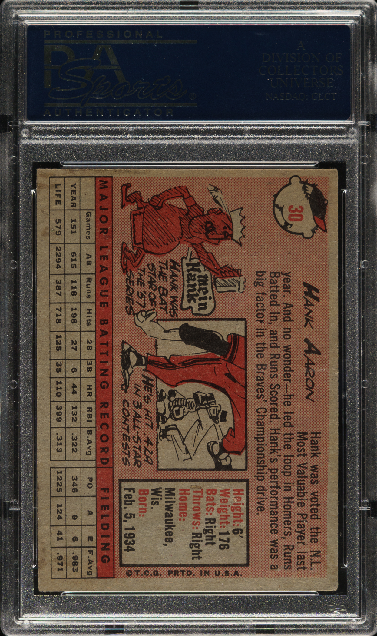 Lot # 2782: 1958 Topps #30 Hank Aaron PSA VG-EX 4