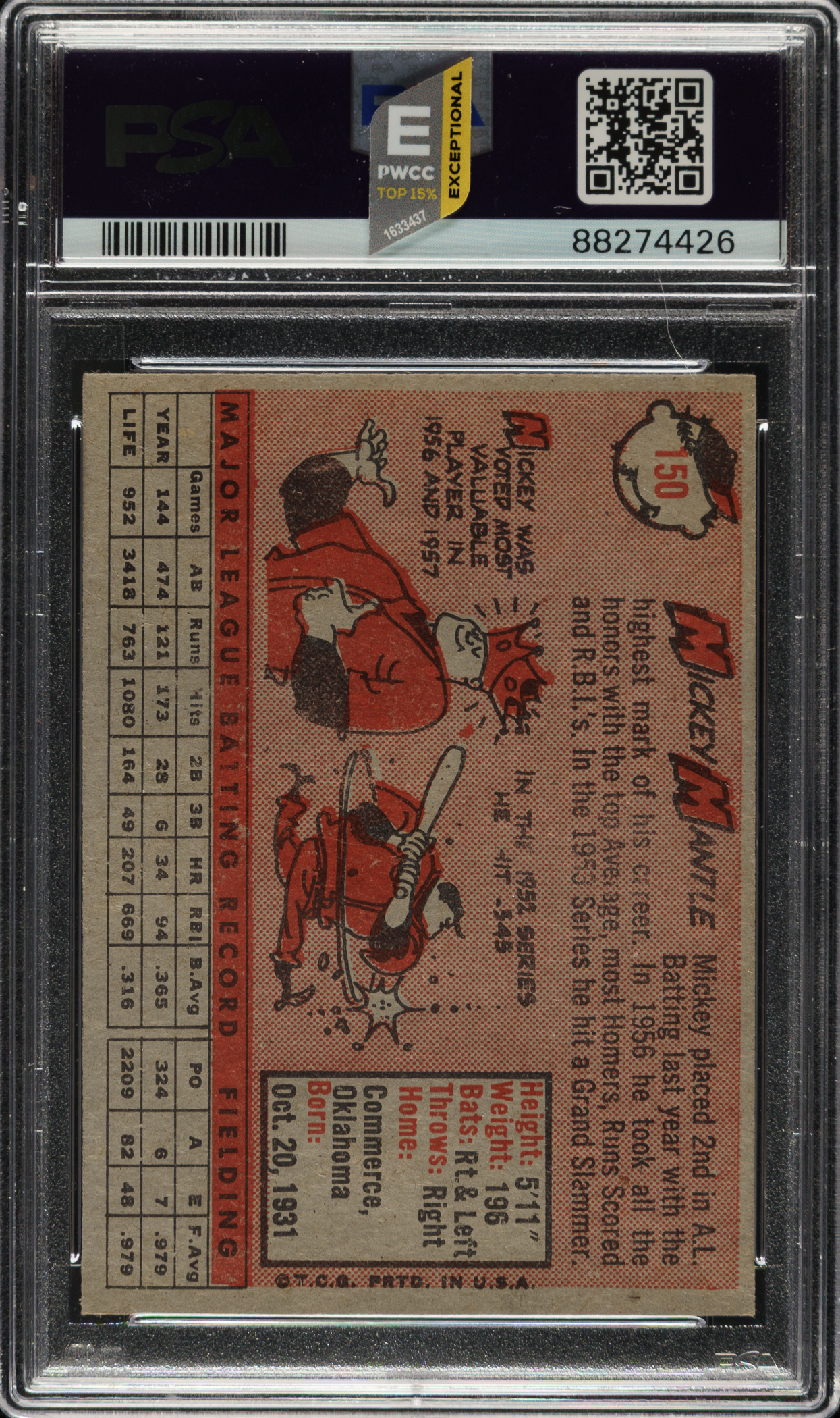 Lot # 2776: 1958 Topps #150 Mickey Mantle PSA VG 3