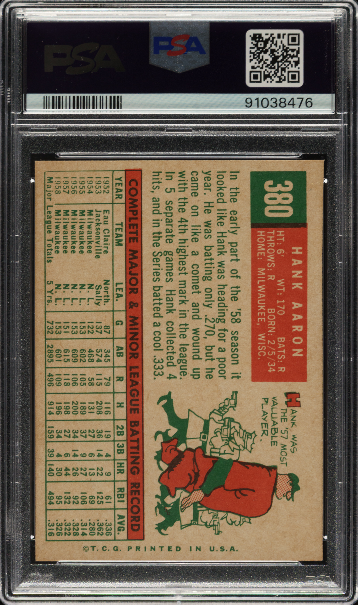 Graded EX+ 5.5 by PSA. Milwaukee Braves Hall of Famer Hank Aaron.