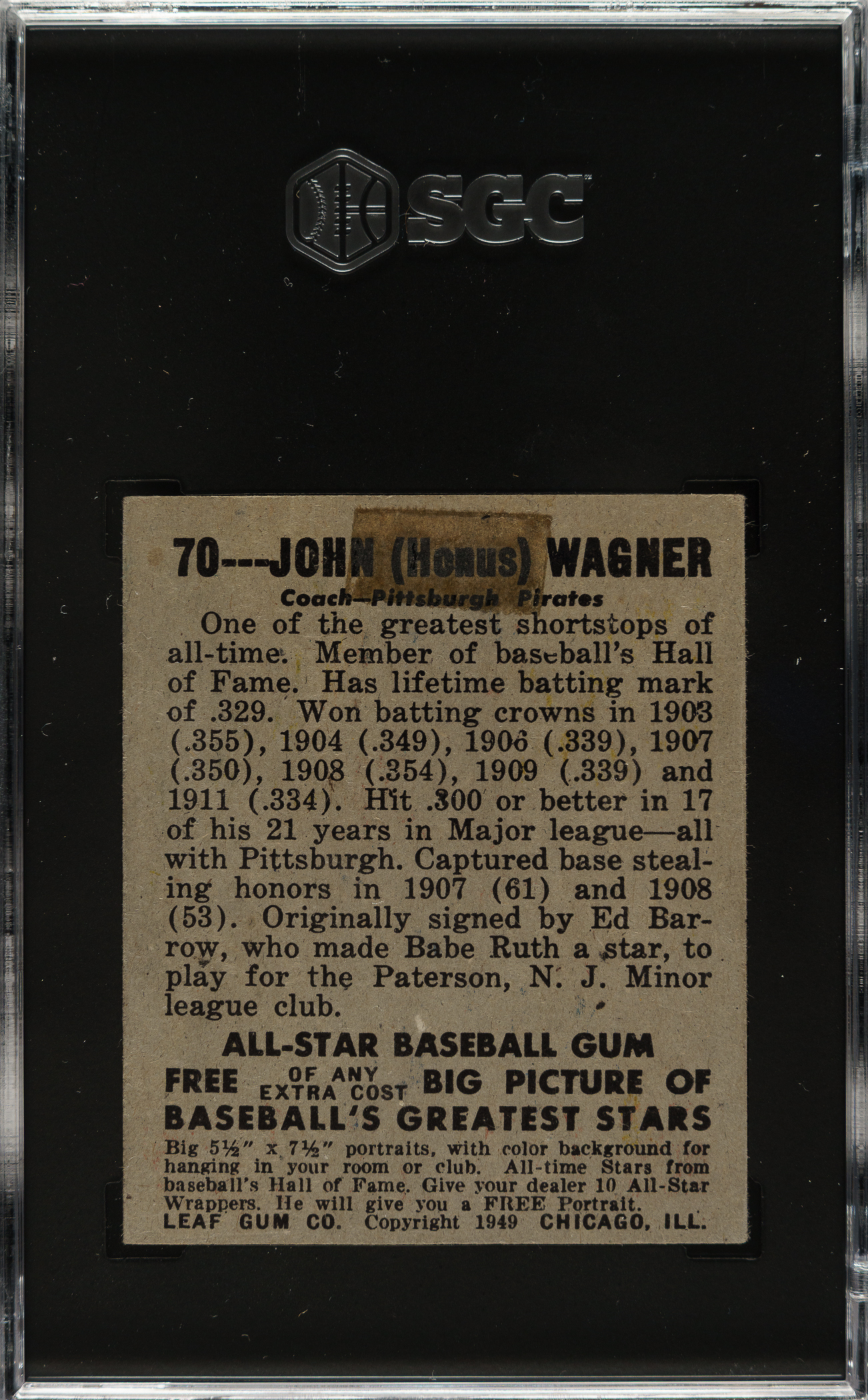 Graded FAIR 1.5 by SGC. Pittsburgh Pirates Hall of Famer Honus Wagner.