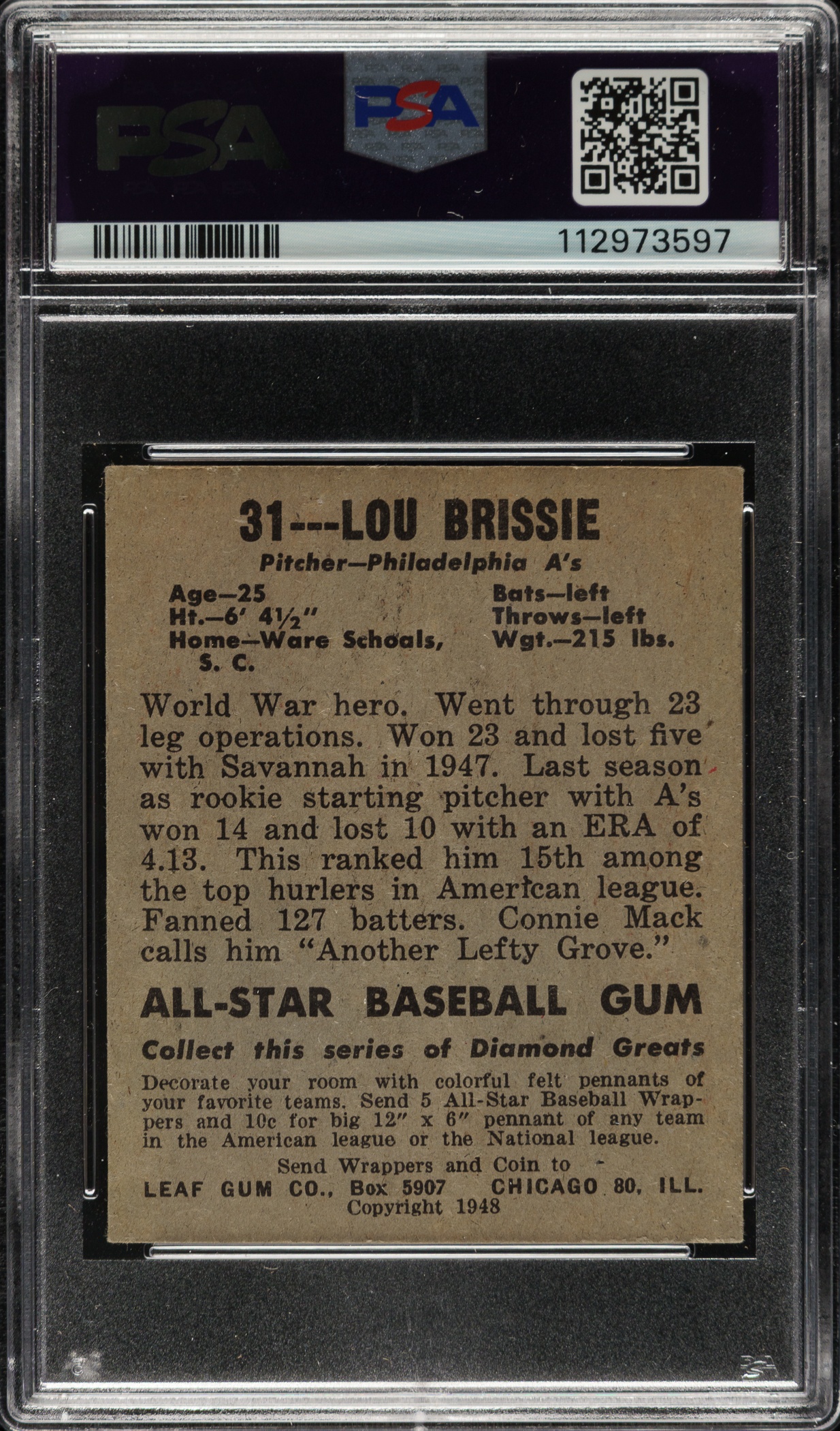 Graded EX-MT 6 by PSA. Philadelphia Athletics.