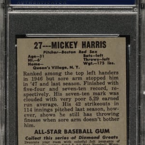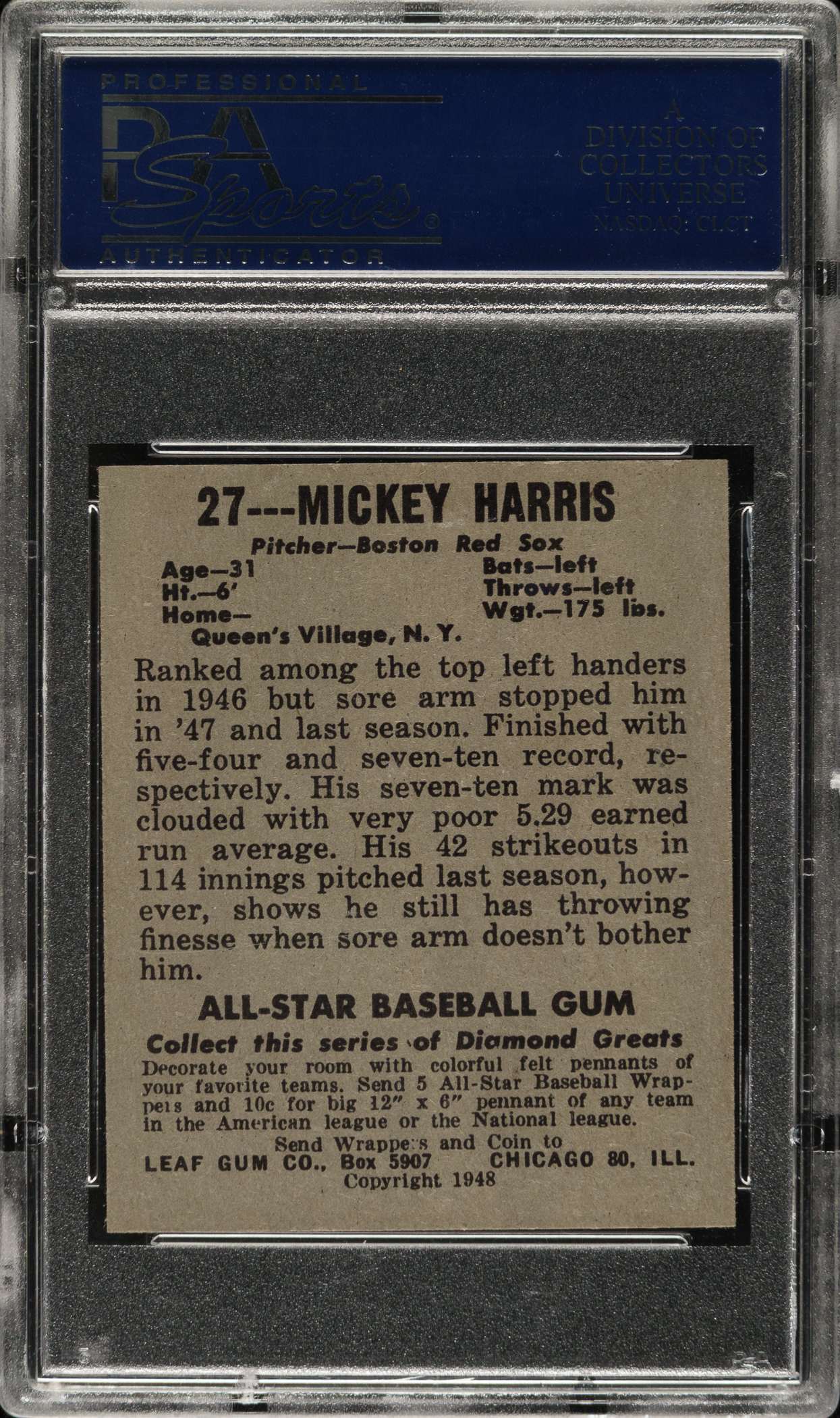 Lot # 2312: 1948-1949 Leaf #27 Mickey Harris PSA NM-MT 8