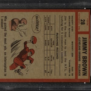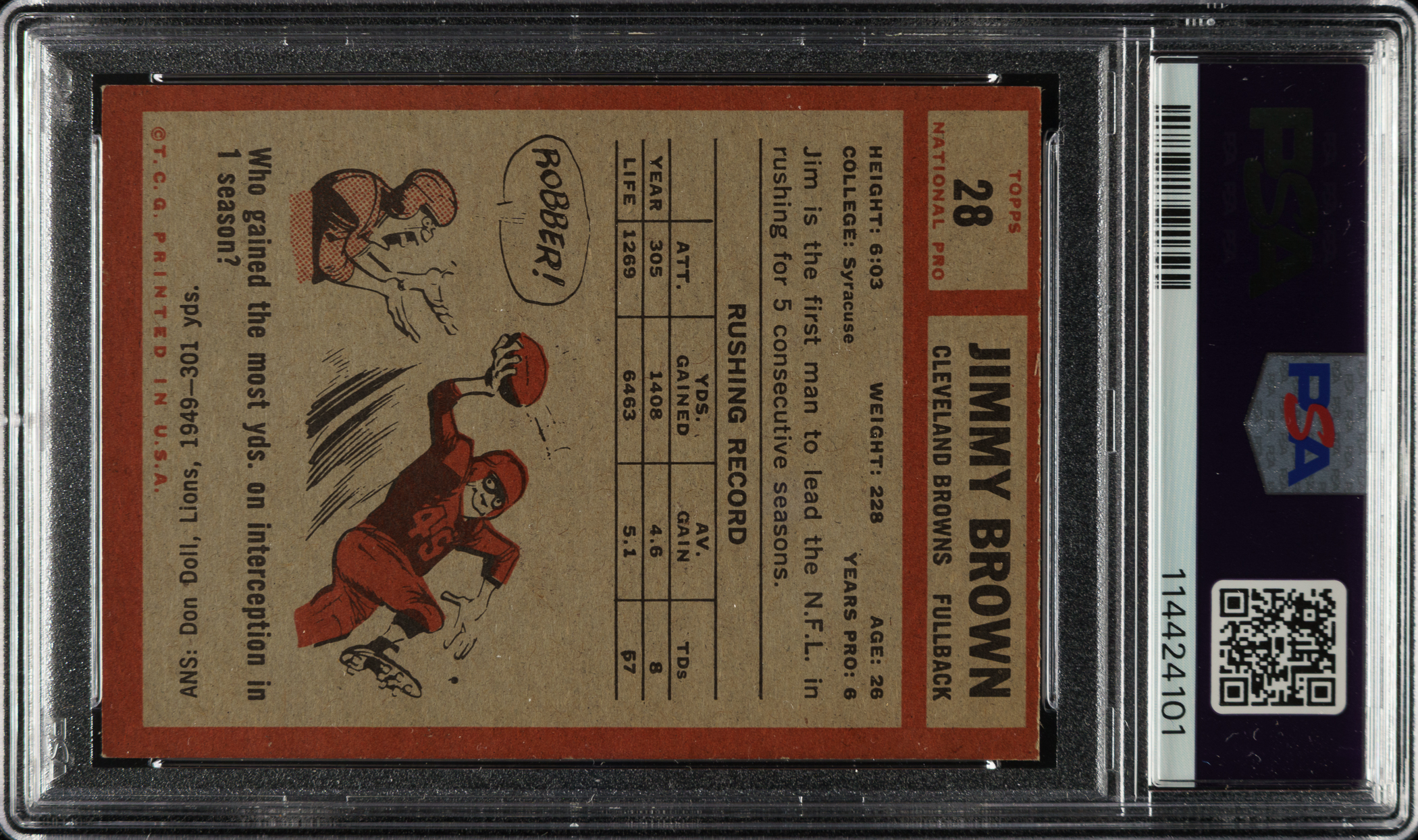 Graded EX 5 by PSA. Cleveland Browns football Hall of Famer Jim Brown.