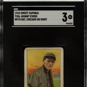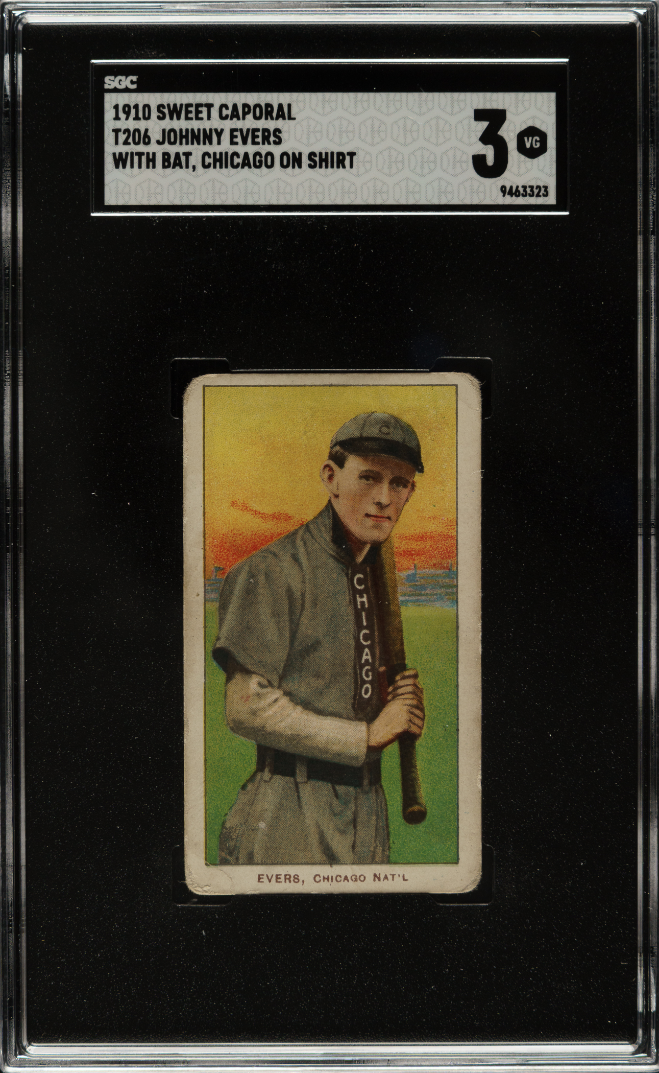 Lot # 561: 1909-1911 T206 White Border Johnny Evers with Bat, Chicago on Shirt SGC VG 3