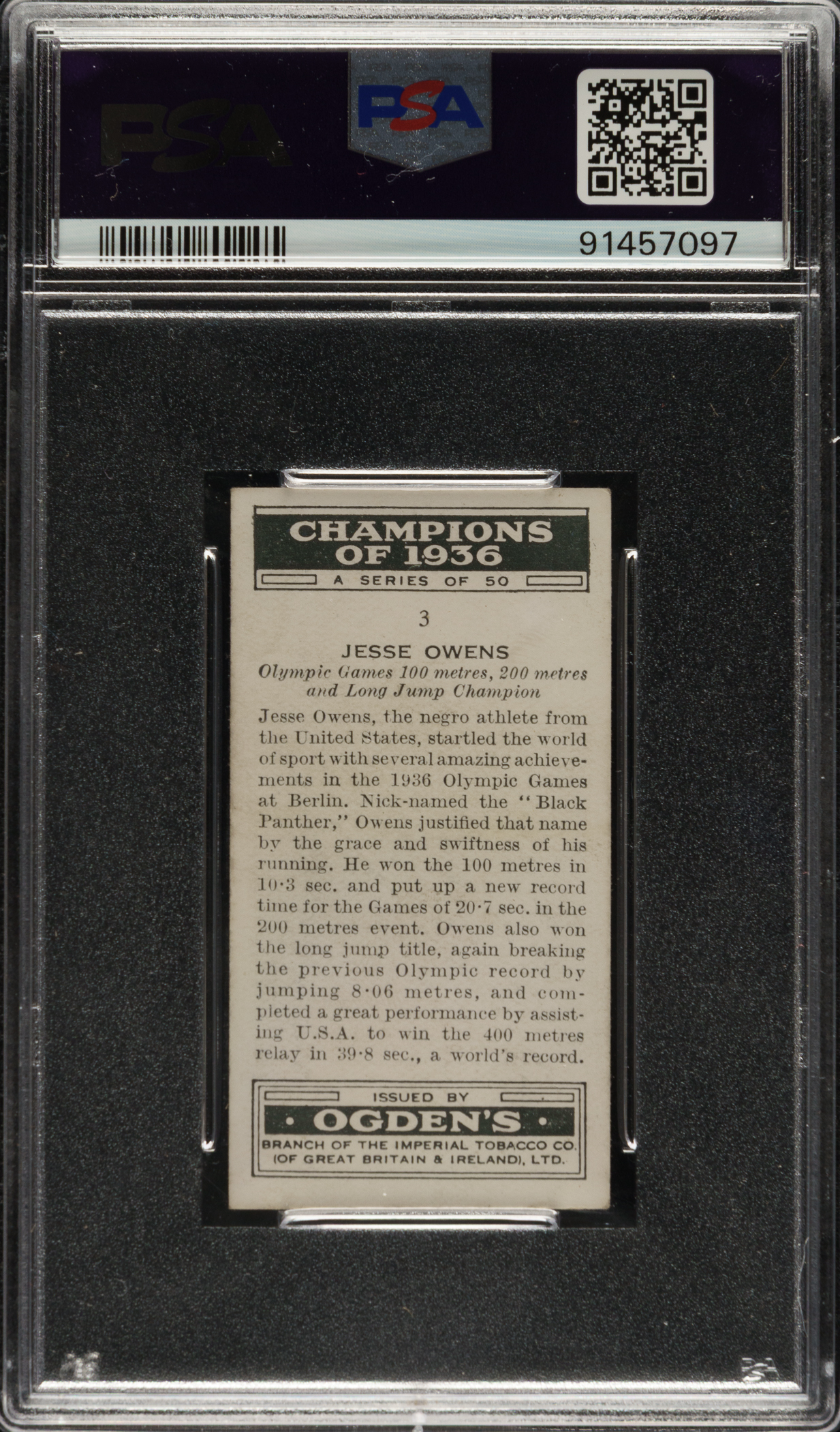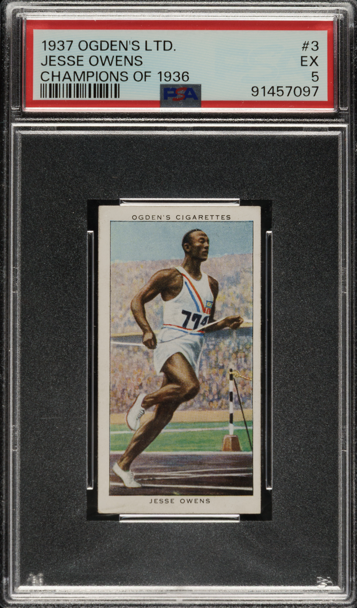 Graded EX 5 by PSA. Track and field Olympian Jesse Owens.