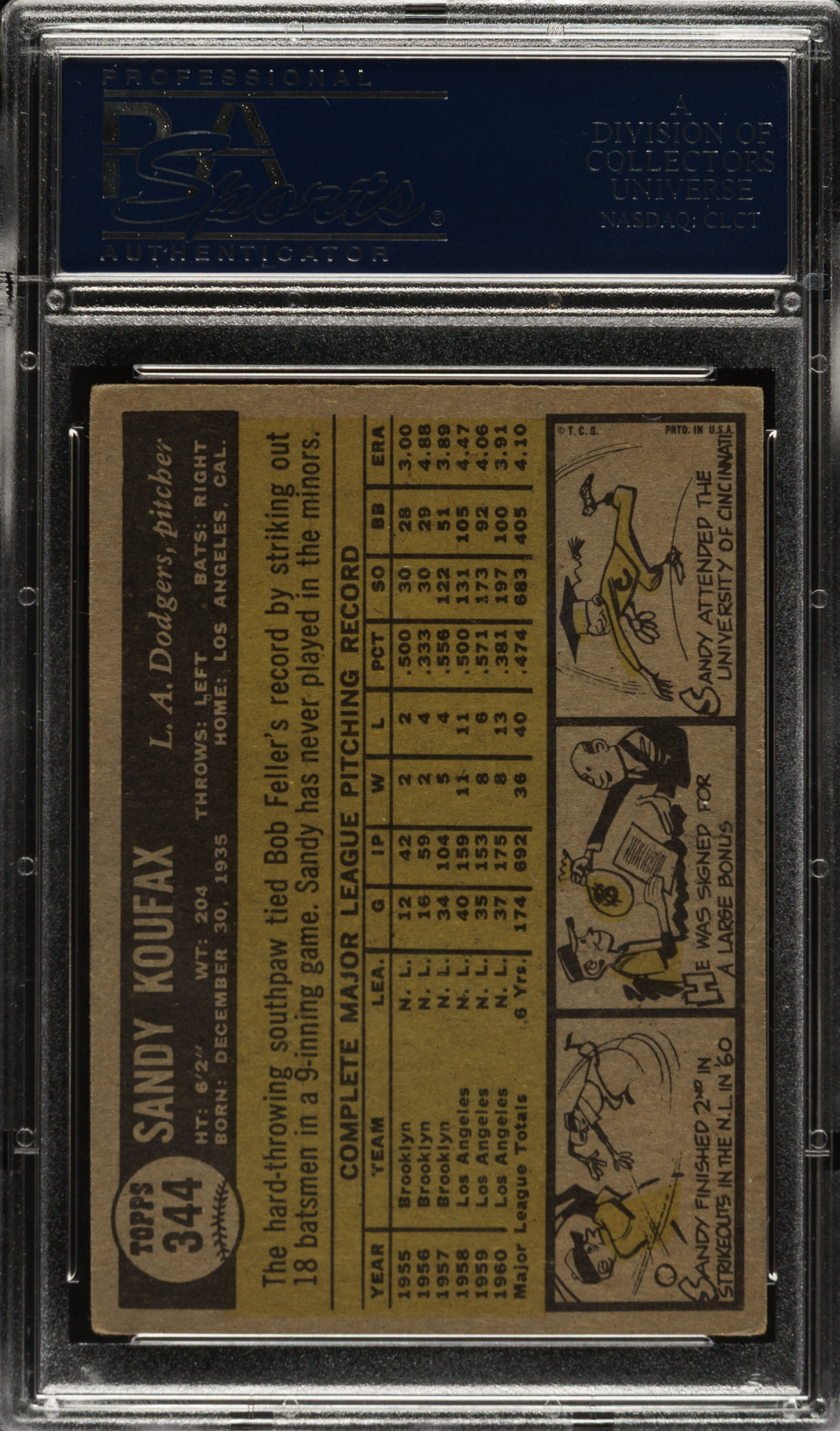 Graded VG-EX 4 by PSA. Los Angeles Dodgers Hall of Famer Sandy Koufax.