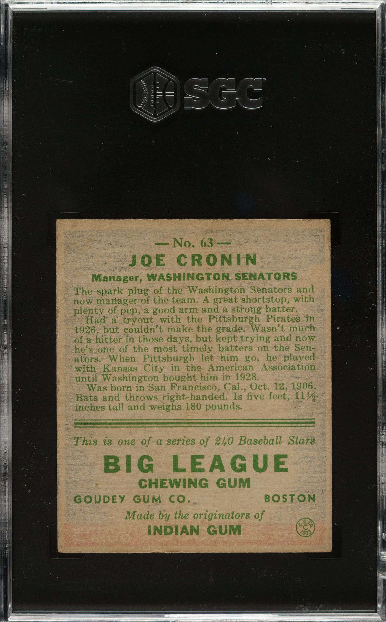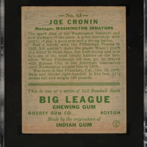 Graded EX/NM 6 by SGC. Washington Senators Hall of Famer Joe Cronin.