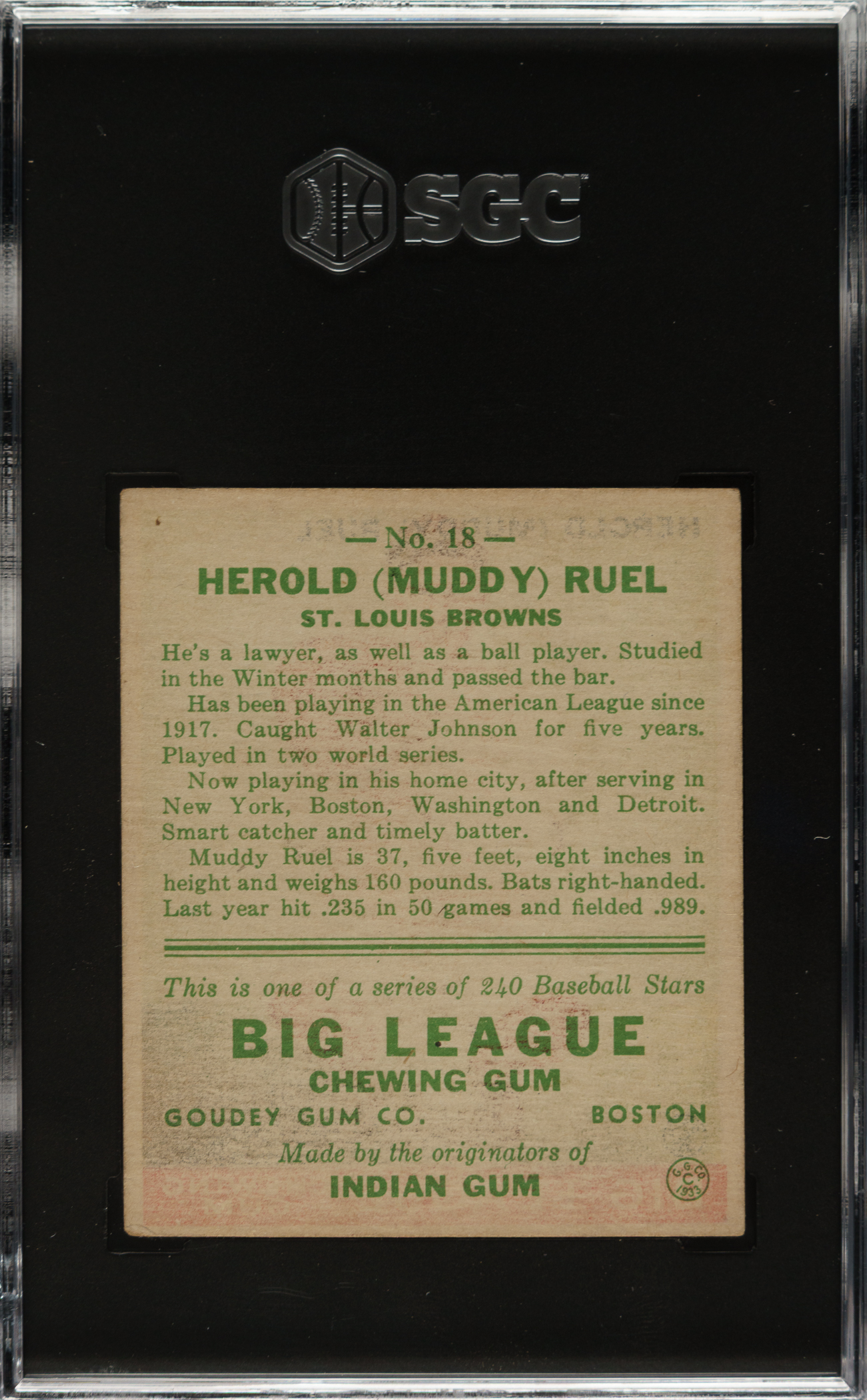 Graded EX+ 5.5 by SGC. St. Louis Browns.