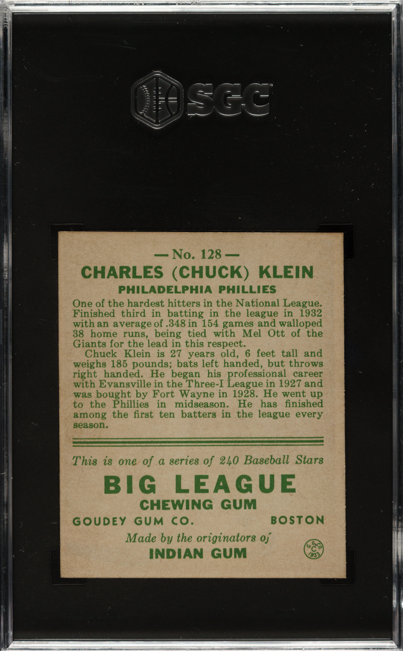 Graded EX 5 by SGC. Philadelphia Phillies Hall of Famer Chuck Klein.